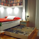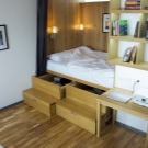 La même base peut être levante ou fixe.On a déjà beaucoup parlé de l'avantage du premier, et le second est tout à fait admissible si vous n'êtes pas limité en mètres carrés. Et le faire pour commander ou acheter des meubles prêts à l'emploi, ne dépend que de chaque cas individuel. Si une option d’achat standard se présente dans l’alcôve, c’est merveilleux. Mais le lit des paramètres habituels (1,2 x 2,0 ou 1,6 x 2,2 m) peut ne pas entrer dans la niche. Ensuite, vous devez le concevoir vous-même ou recourir à des artisans du meuble.