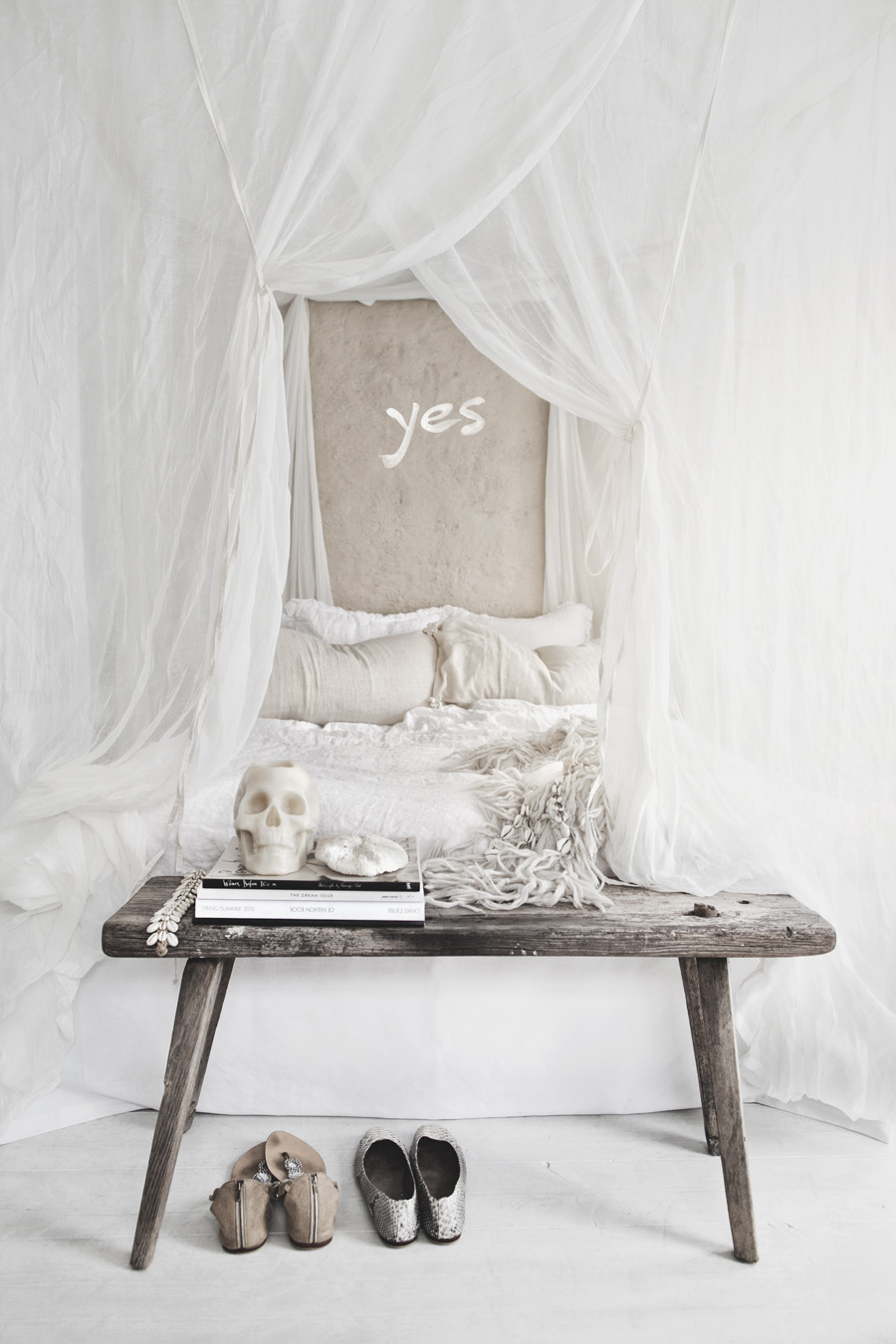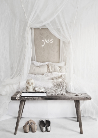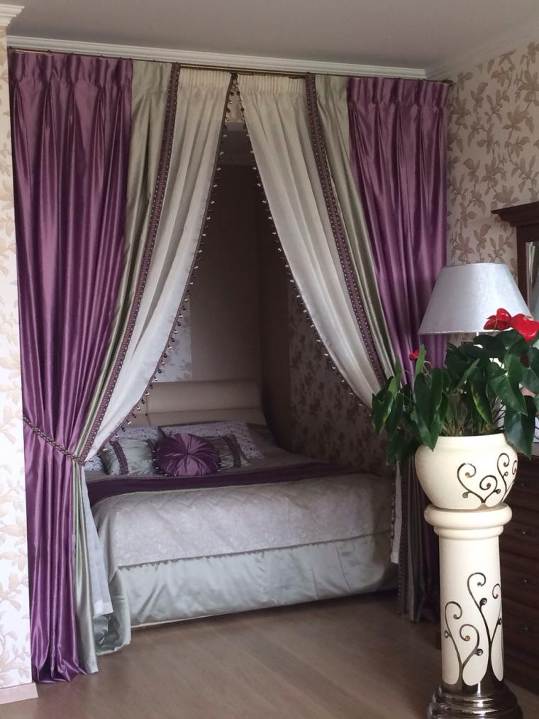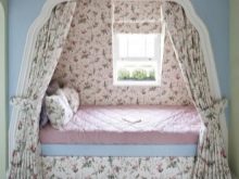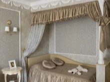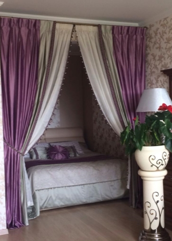 Ne pas oublier de podhvaty décoratif, tresse, divers accessoires et bijoux. Il est permis de draper non seulement l'entrée d'une niche, mais également de créer un mur tout en douceur autour du lit. Alors, votre lit sera sûrement l’endroit le plus merveilleux de la maison.