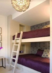 Il n'y a rien de plus confortable qu'un lit dans une niche, car avec un tel agencement de lit un confort et une pacification spéciaux peuvent être ressentis. Dans ce coin de paix et de détente, vous pouvez vous détendre complètement, dormir ou passer du temps avec votre livre préféré. La niche dans la salle elle-même crée une atmosphère unique. C'est comme un monde séparé dans l'espace de la pièce entière, où vous pouvez vous retirer de la journée animée.