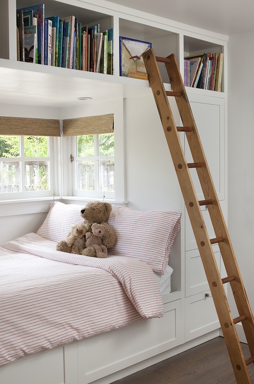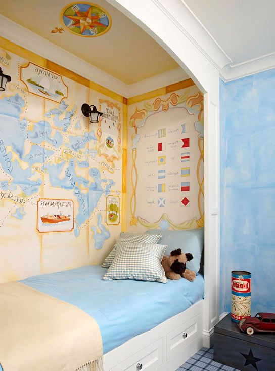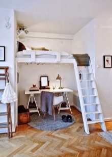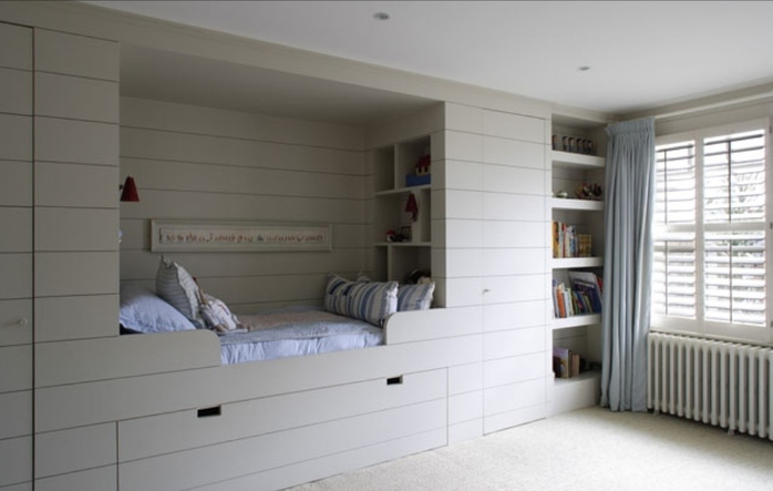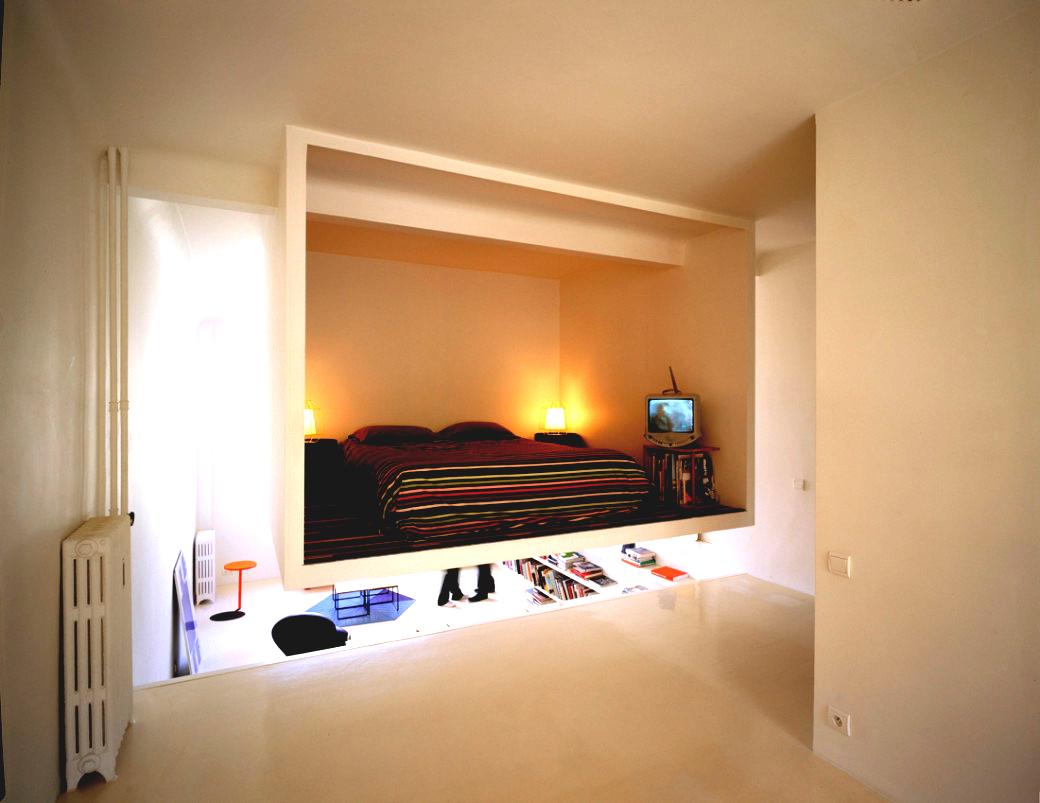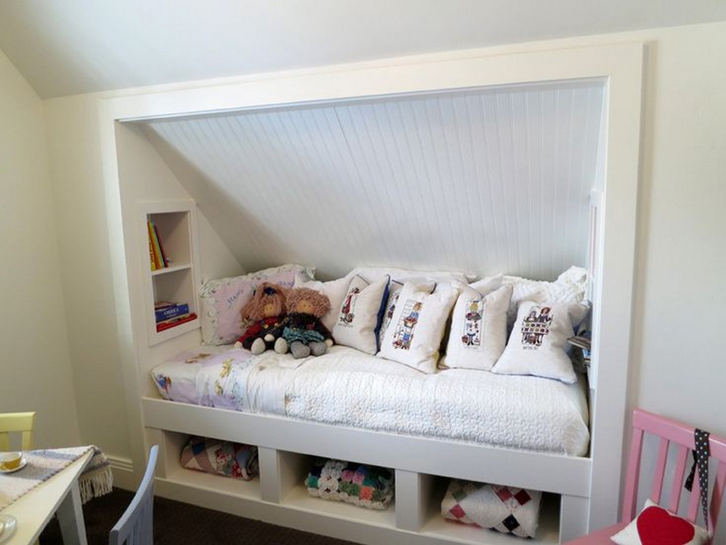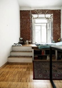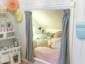 Avoir une telle place en présence d'enfants est une excellente option. Dans ses profondeurs, il est possible d'agencer à la fois le lit et l'aire de jeu. Bien sûr, le lit sera sur une certaine hauteur du sol. Votre bébé sera ravi de trouver un endroit privé pour dormir et jouer! Et s'il y a deux enfants, installez également le lit double dans un espace fermé des regards indiscrets. Il s’agit là d’un grand pas en avant, utile à tous les pères et mères attentionnés.