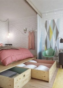 Si vous êtes prêt à essayer de construire un tel lit, mais qu'il n'y a pas de place dans votre appartement, ne vous inquiétez pas. Sécurisez le lit avec un auvent avec des rideaux épais et obtenez quelque chose de similaire sans le coût de la construction de cloisons.Et si vous voulez vraiment tout, quelques feuilles de gypse, des profilés et un tournevis en quelques heures permettront de diviser la pièce en zones. Et maintenant, vous êtes l'heureux propriétaire d'un coin séparé à part entière pour vos loisirs!