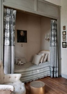 - En plaçant le lit dans une niche sous la fenêtre, vous pourrez admirer le paysage de la rue;