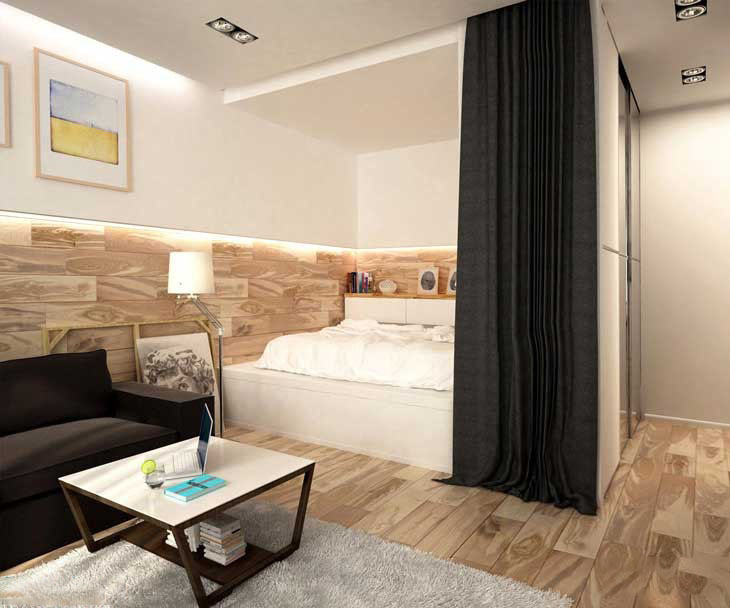 Le zonage d'espace est une option idéale pour une famille vivant dans un appartement d'une pièce. Un lit dans une niche permettra d'organiser une chambre séparée pour les parents ou, au contraire, de mettre de côté un espace indépendant pour l'enfant. Et même si une personne habite dans une maison composée d'un salon, la disposition d'un tel coin offre de solides avantages.