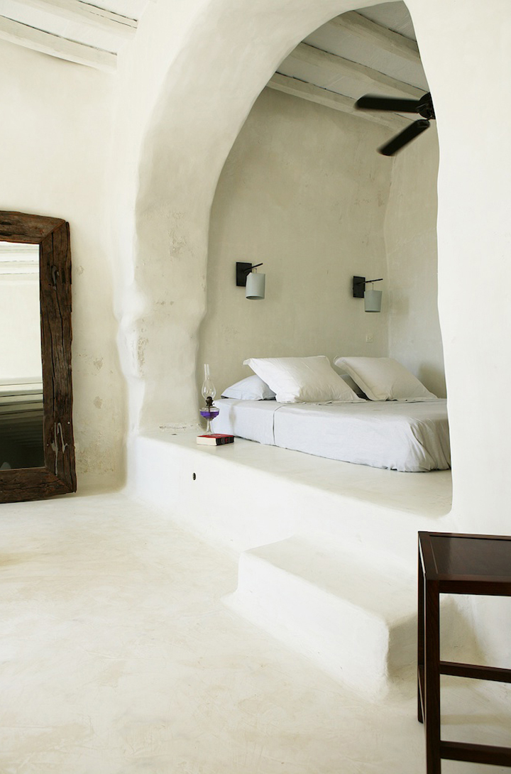 Très souvent, dans de telles niches, ils équipent non pas des lits classiques, mais des podiums faits maison sous lesquels ils placent des sections spacieuses pour le stockage. C'est une excellente alternative à une armoire ou à des tables de chevet. Que dire, les avantages de la masse! Même s'il existe une possibilité d'approfondir la pièce visuellement en remplissant le mur de la niche avec des miroirs ou des papiers peints à thème.