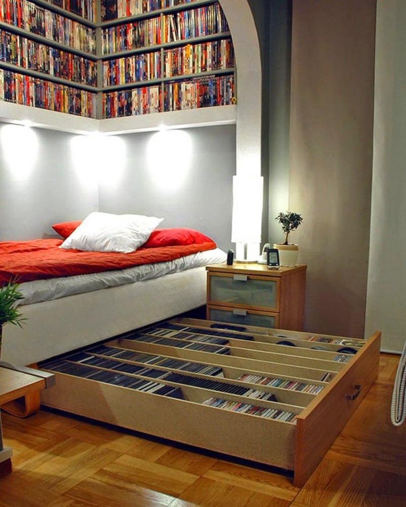 - L'espace sous le lit est idéal pour ranger toutes sortes de choses.