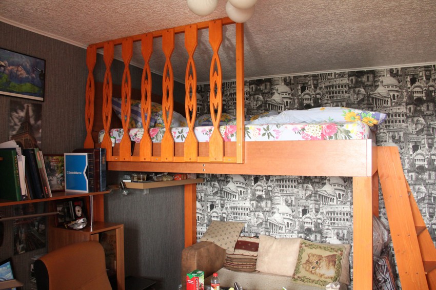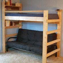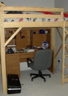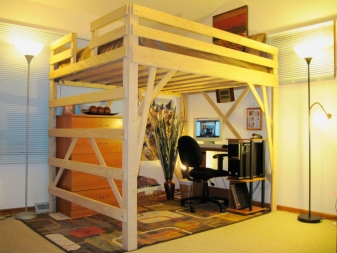 Le lit mezzanine trouvera sa place dans n’importe quel intérieur, car vous pouvez l’organiser dans n’importe quel style et utiliser n’importe quelle couleur ou décoration. Sur l'arbre, vous pouvez couper des motifs. L'apparence d'un produit dépend du désir et de l'imagination des propriétaires qui peuvent faire d'une œuvre d'art un lit simple.