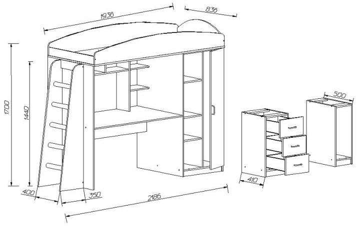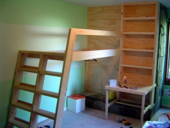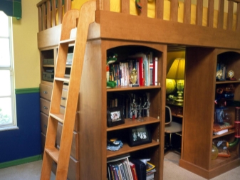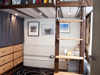 Certains modèles ont des escaliers avec des tiroirs au lieu des escaliers. Et il existe des conceptions avec un podium, qui est fixé à la moitié de la hauteur du lit et clôturé avec des balustrades. Dans ce cas, il s’agit d’une faible hauteur avec une légère pente.