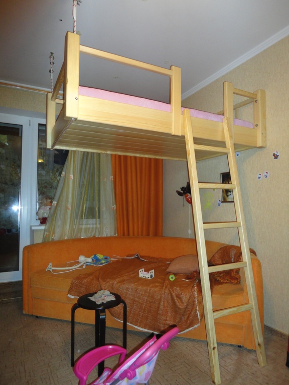 - Le grenier est installé sur deux supports et fixé au mur. Cette conception est assez stable et ne se renversera donc pas si les enfants se livrent au lit. Mais il ne peut pas être facilement déplacé d'une partie de la pièce à une autre.