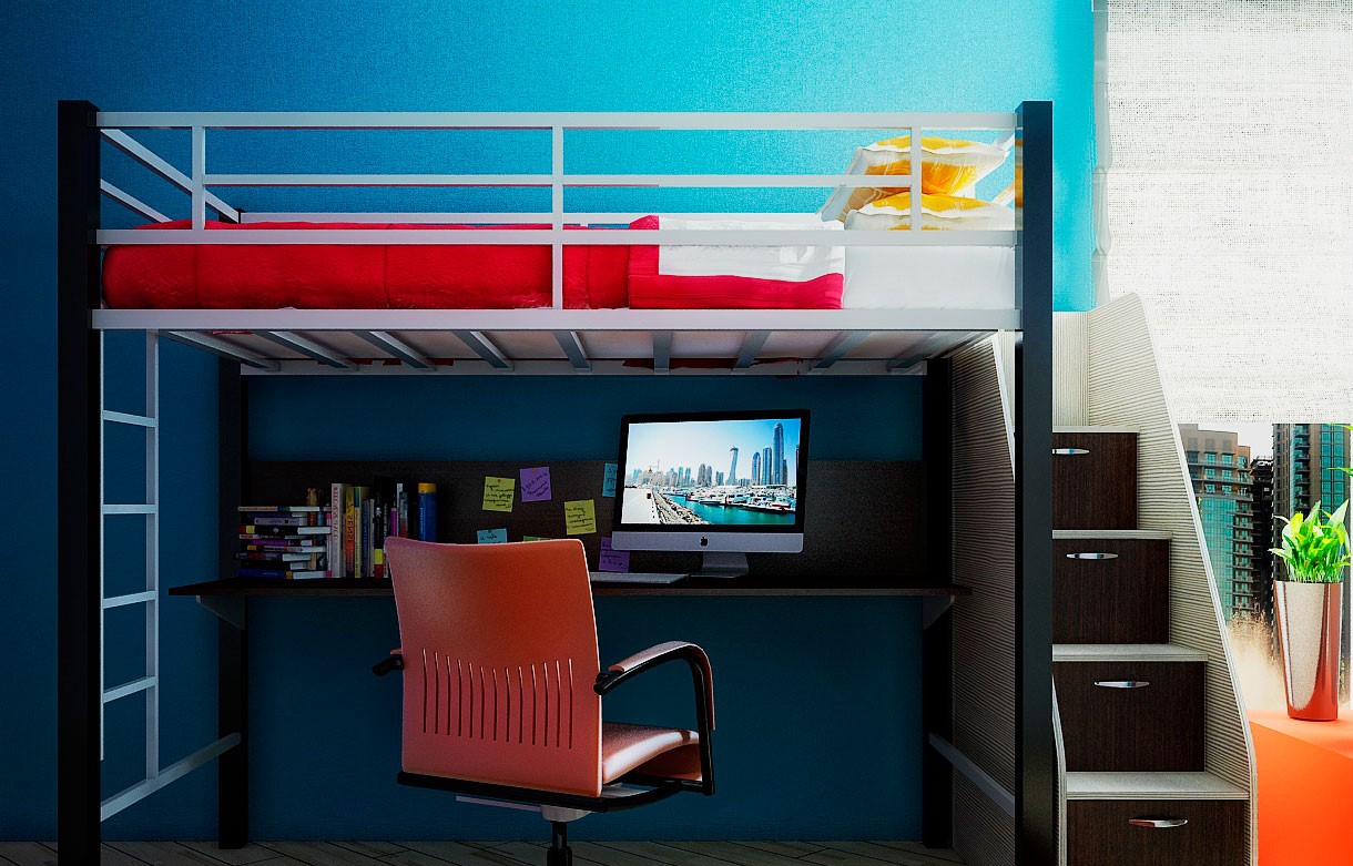 Lit mezzanine particulièrement pertinent pour les appartements d'une chambre.