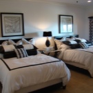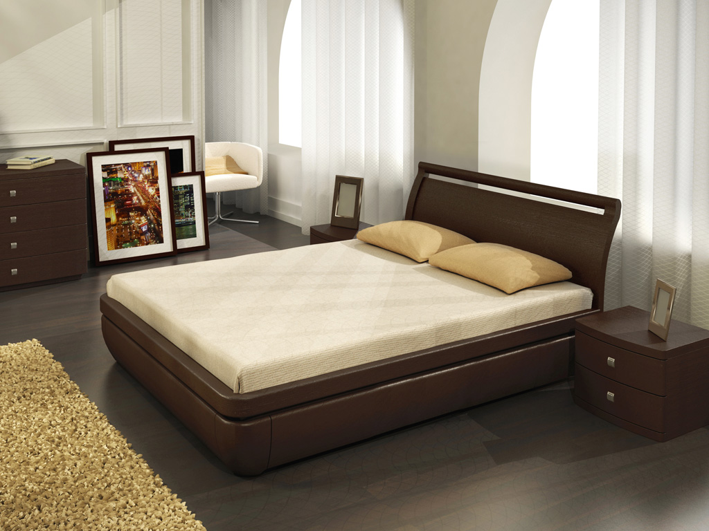 - Pour une chambre décorée à l'américaine Fit des lits surélevés avec un design solide. Les formes strictes des têtes de lit en bois, les revêtements en cuir sans l'utilisation de boutonnières - telles sont les principales caractéristiques du lit pour ce style.