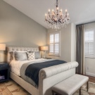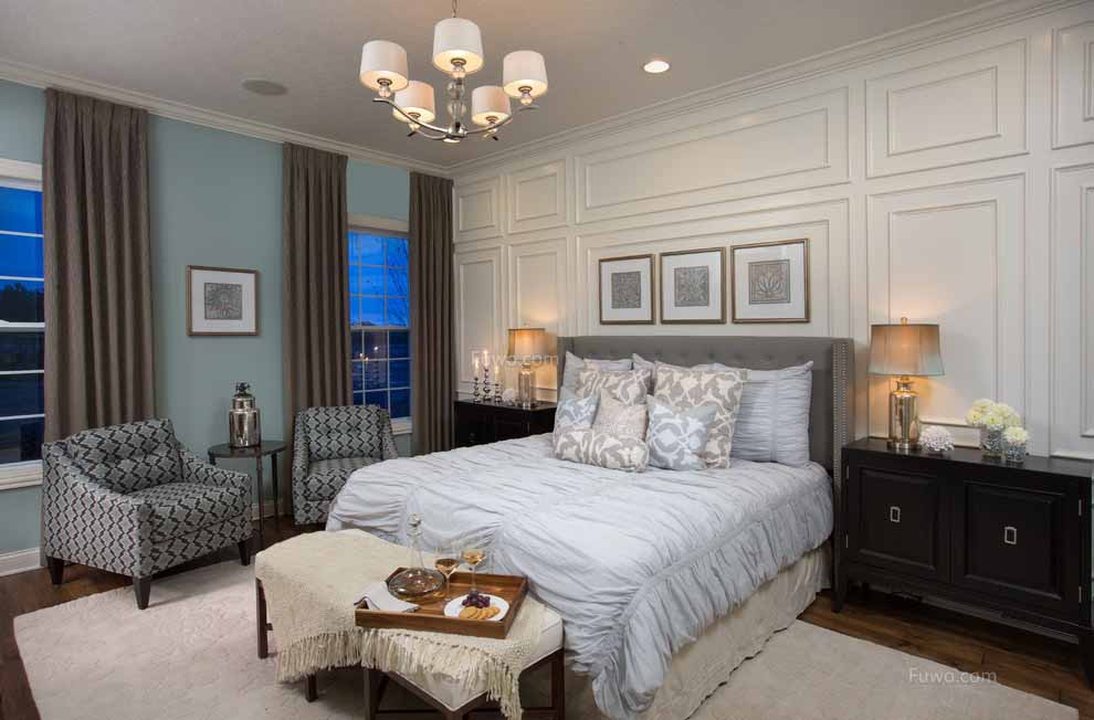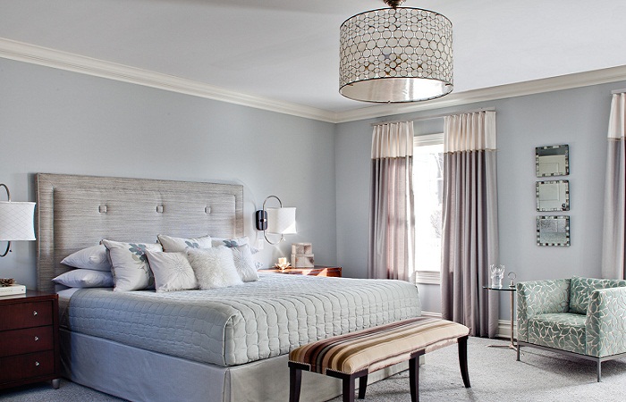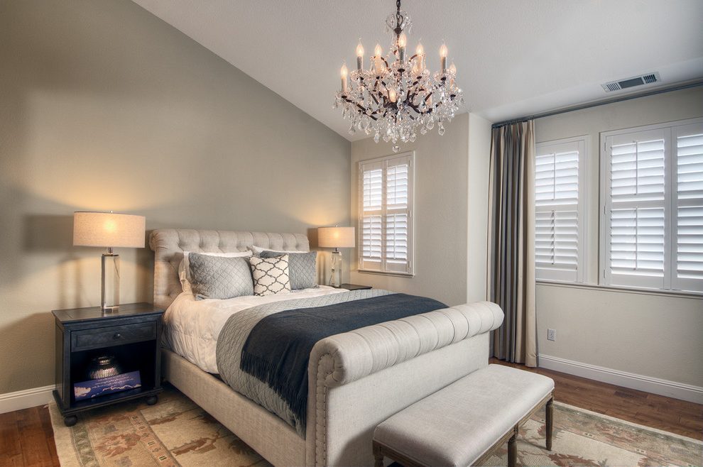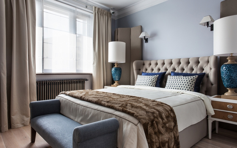 - Dans le classicisme Vous pouvez également utiliser un lit haut. En choisissant la taille du lit king size et le cadre en bois naturel, vous créerez un vrai lit royal dans sa chambre.