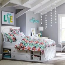 - Pour les petites chambres, il est très important d'avoir emplacements de stockage supplémentaireset lit haut le permet. Le grand espace en bas permet d'y placer divers tiroirs, non seulement pour la literie, mais bien plus encore.Mais il convient de rappeler que l'installation d'un tel lit avec un lit pour une personne permet de réduire visuellement la pièce.