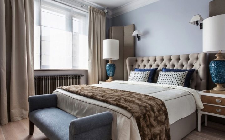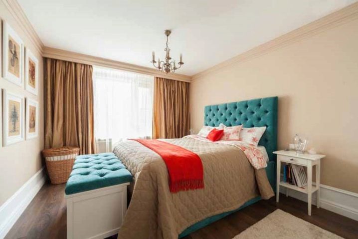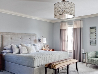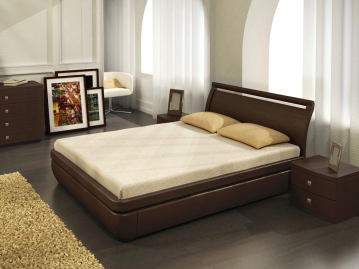 - Un lit surélevé ajoute de la pomposité à l'intérieur, par conséquent, les objets environnants doivent également être appropriés.