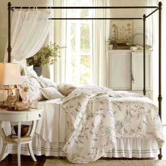 - Aussi il ira pour une provence romantique. Dans ce cas, vous devez choisir un modèle de teintes claires et une garniture en tissu allant de la tête à la fleur. Les articles forgés avec toutes sortes de boucles seront pertinents ici.