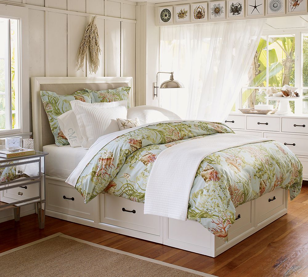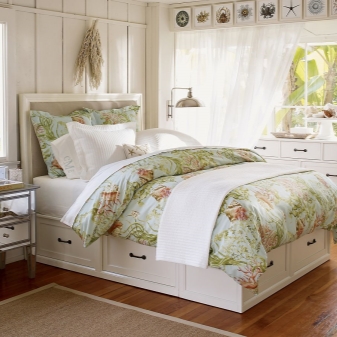 Si vous êtes fans du Feng Shui, achetez un lit avec des tiroirs en bas de l'avis de cette «science» n'en vaut pas la peine. Dans ce cas, il est préférable de privilégier les meubles hauts, afin que l’air puisse facilement circuler au bas du lit. Dans ce cas, la distance entre le sol et le cadre du lit peut être masquée à l'aide d'un couvre-lit approprié.