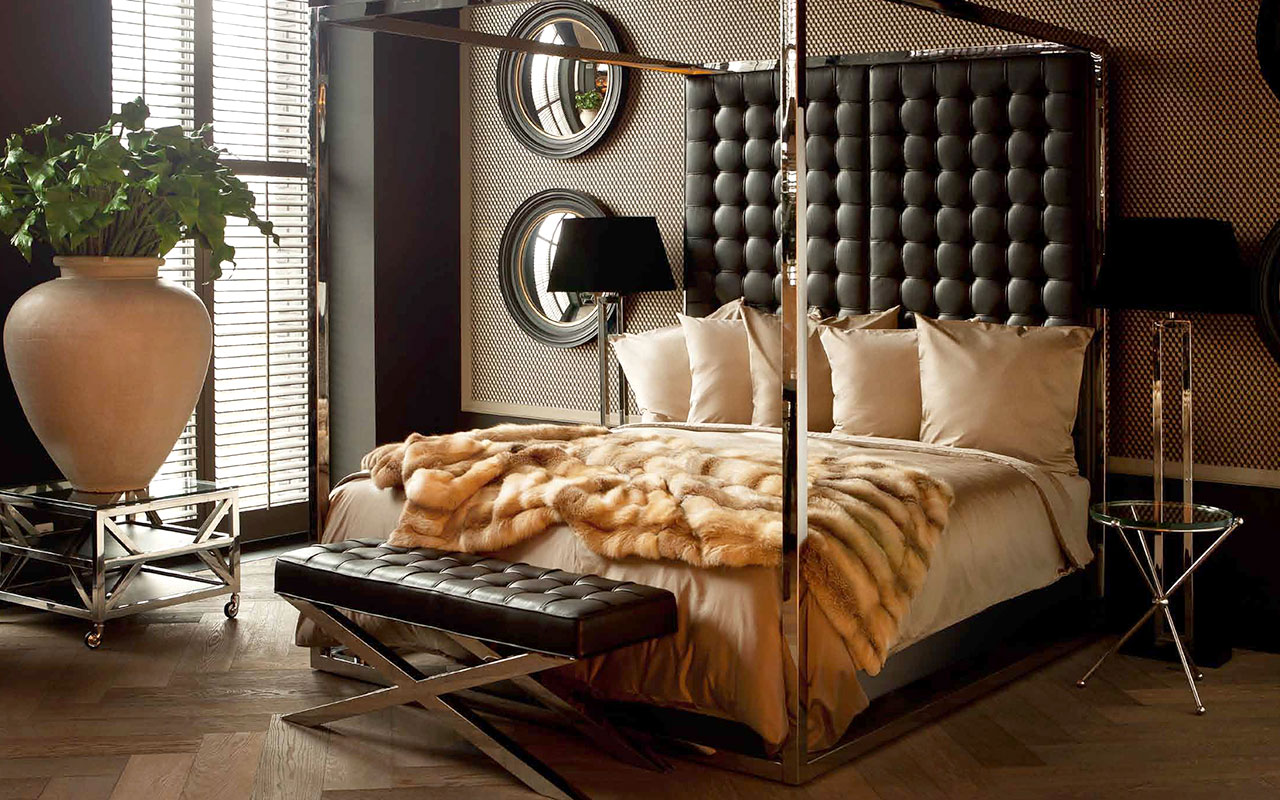 - Lit chromé dans un style moderne, il décorera votre chambre à coucher: tête de lit haute en cuir avec attache de calandre, supports brillants sous un auvent, non décoré de tissu - tout cela donnera à l'intérieur une nouveauté et une extravagance au sens strict du terme.