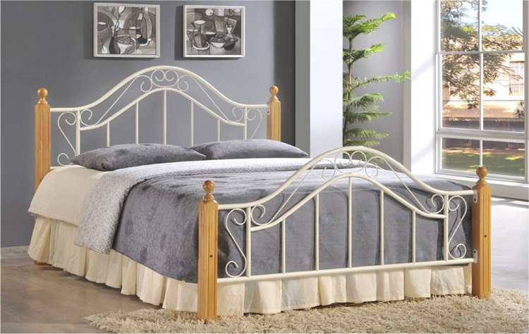 - Métal. Des lits élevés en ce matériau existent également. Sur de hautes jambes, avec toutes sortes de monogrammes forgés, ils deviennent un accent de l'intérieur. Le métal est également un matériau respectueux de l'environnement qui vous permet de créer un design unique de la tête de lit. En outre, il n'est pas pointilleux sur le niveau d'humidité et de température ambiante, durable. Mais il a froid. Tout le monde ne dormira pas confortablement sur un tel lit.