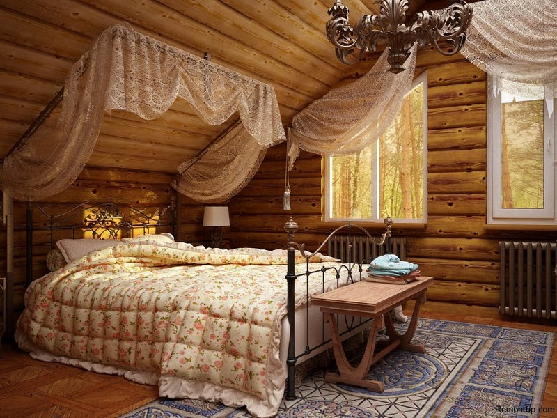 - Pour le style campagnard aussi lit approprié avec une hauteur accrue. Dans ce cas, la conception du lit est effectuée de manière plus austère. Le matériau prioritaire ici est le bois.