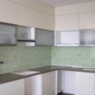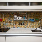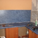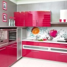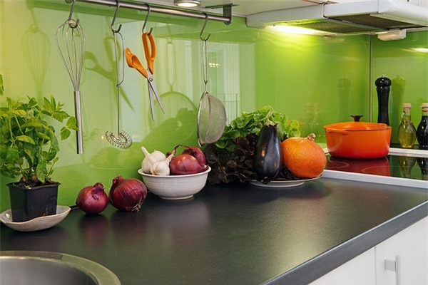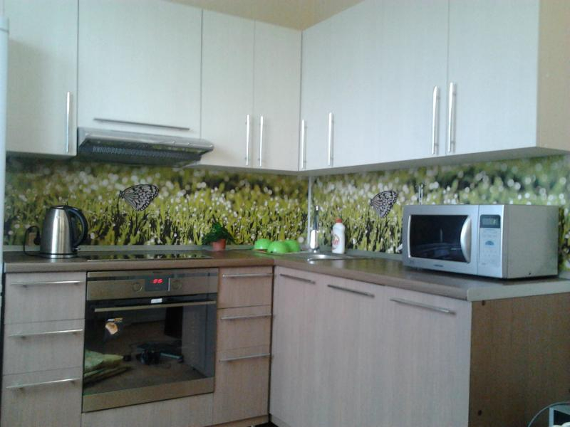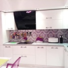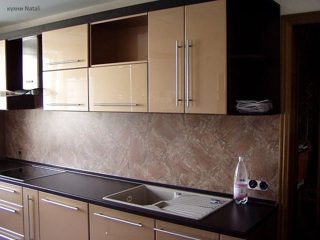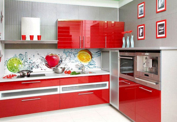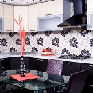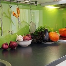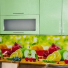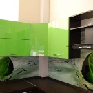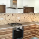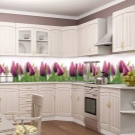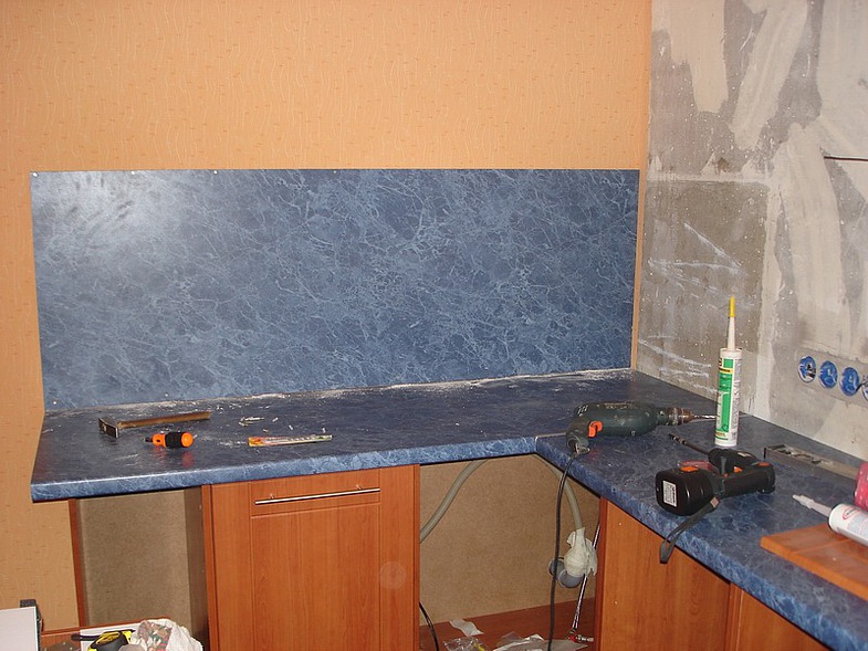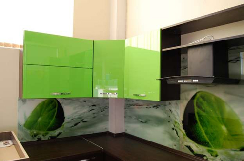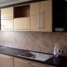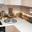 Pour le tablier de cuisine, on utilise de plus en plus souvent des feuilles d’ABC - un type spécial de plastique, qui utilise des copolymères qui augmentent sa résistance. Les panneaux ABC sont considérés comme plus écologiques, ils absorbent bien la peinture (c’est sur ce matériau que l’impression photo est la meilleure) et résistent aux températures élevées. Murs décorés avec un tel matériau, peu exigeants en soins. Vous pouvez facilement y faire un trou si vous avez besoin d'ajouter une prise ou de passer dans la cuisine.