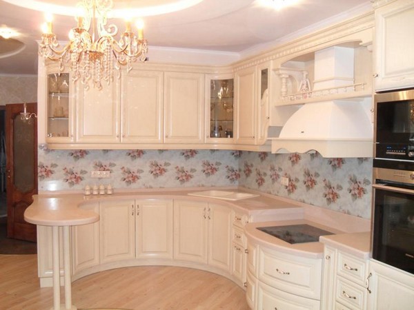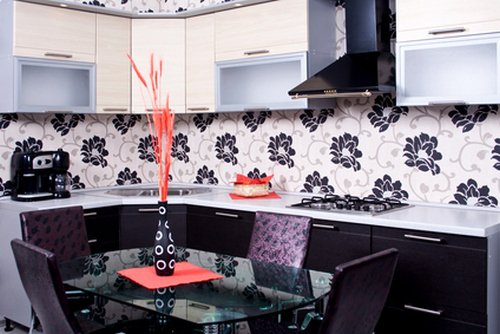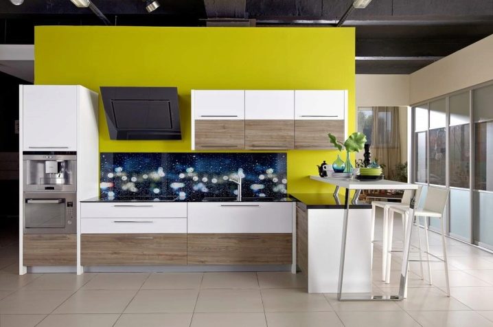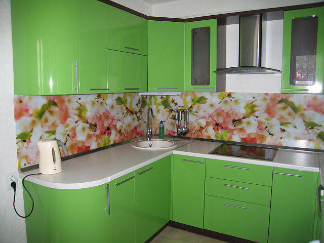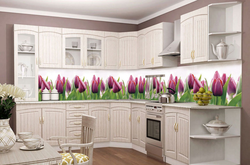 Les panneaux peuvent avoir les dessins les plus différents - unicolore, imitant la texture de différents matériaux, avec des motifs floraux, des motifs géométriques, des motifs abstraits, etc.Pour la décoration de petites pièces, on utilise le plus souvent des panneaux lumineux à motif implicite, mais les motifs lumineux conviennent mieux aux cuisines spacieuses.