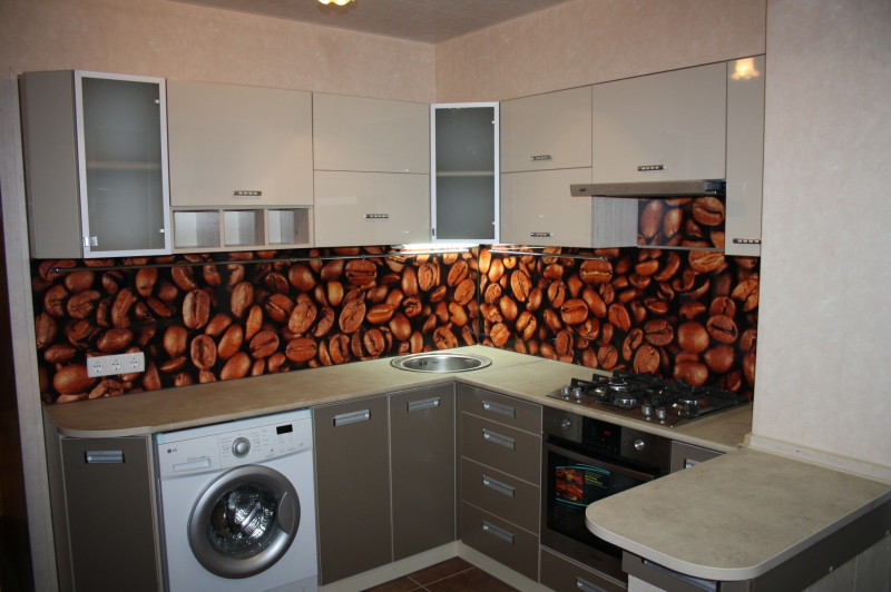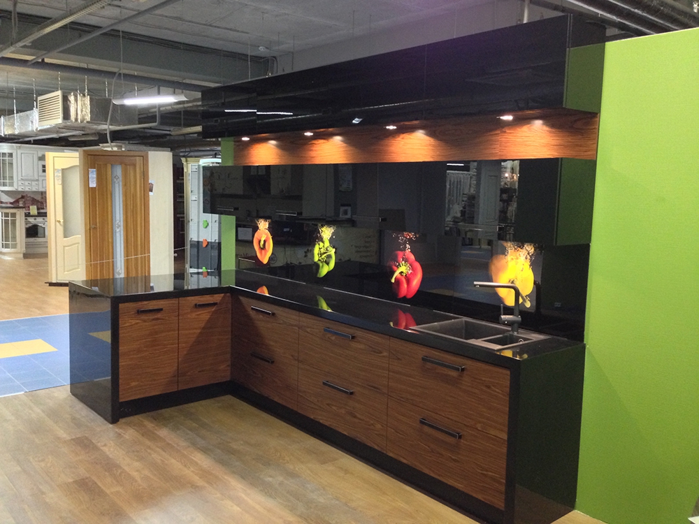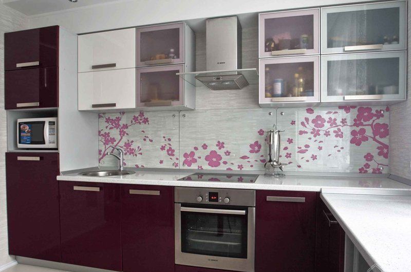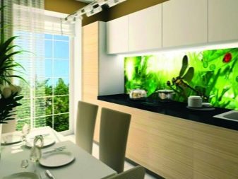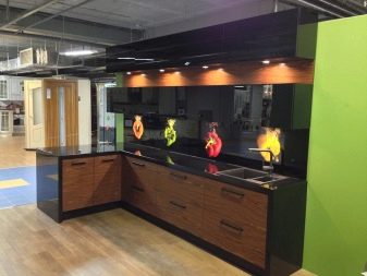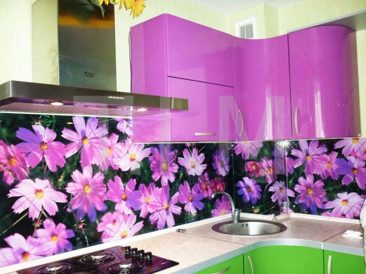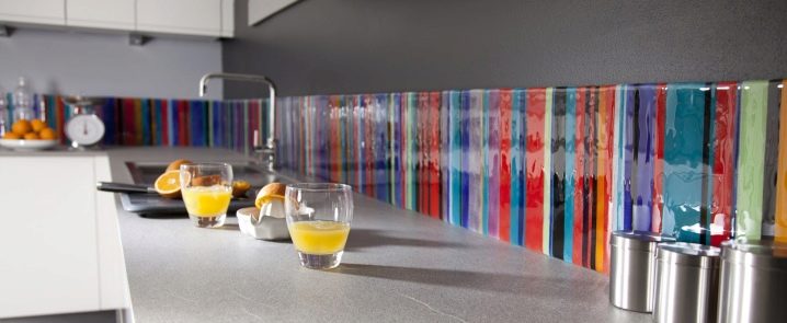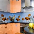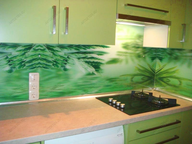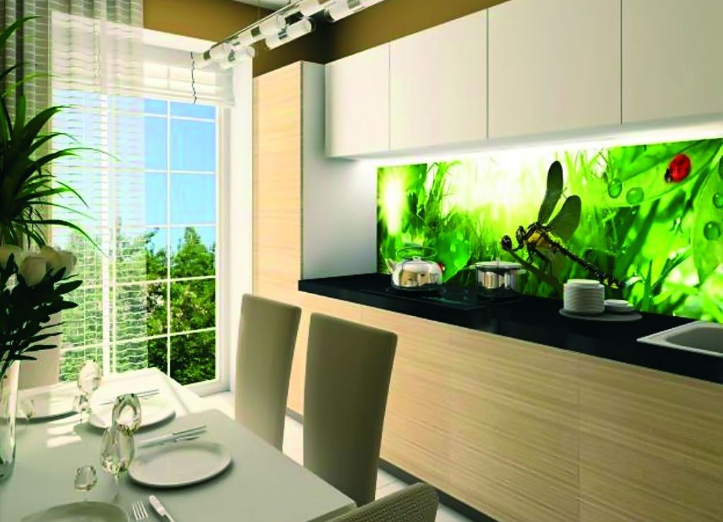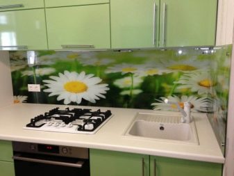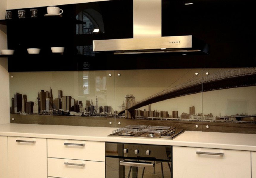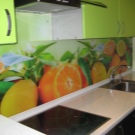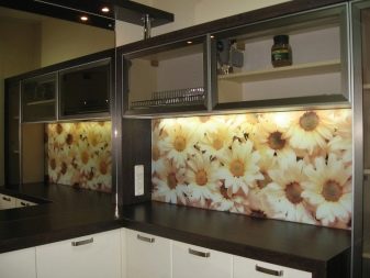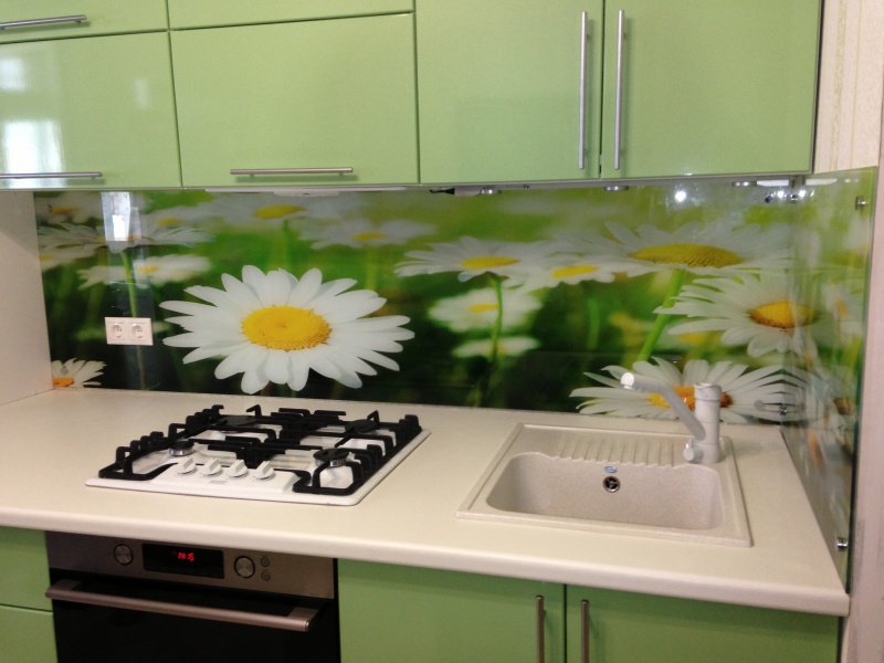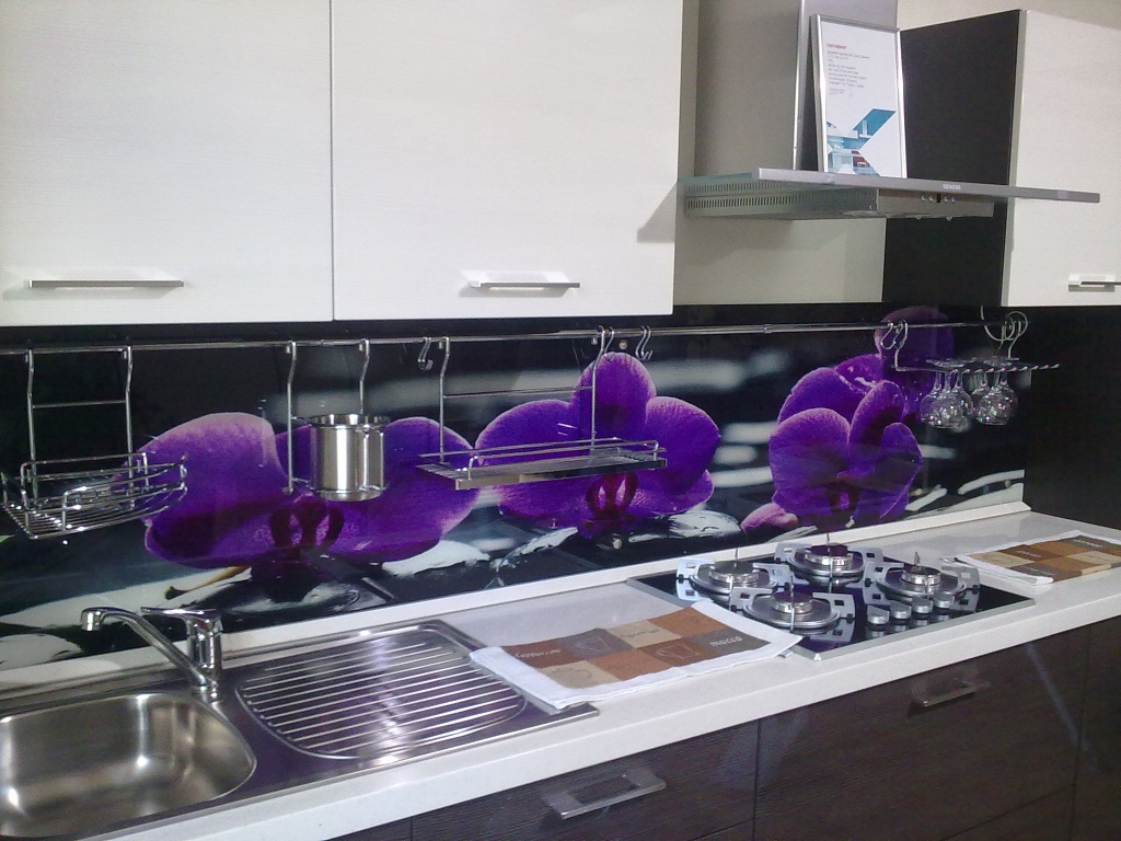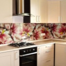 L'impression de photos sur un tablier en verre est beaucoup plus attrayante que sur un panneau en plastique, et il est beaucoup plus facile de prendre soin de ces panneaux. Mais néanmoins, comme ailleurs, il y a des inconvénients. Si vous ne prenez pas de précautions et ne faites pas attention lors du transport ou de l'installation, le verre peut se fissurer sous l'effet d'un choc violent. Si vous installez un tablier sur un mur d'une nouvelle maison, le produit en verre ordinaire craint de rétrécir le bâtiment. Pour cette raison, il est recommandé de fabriquer un panneau mural en verre trempé, mais cela se révélera beaucoup plus coûteux par rapport au plastique.