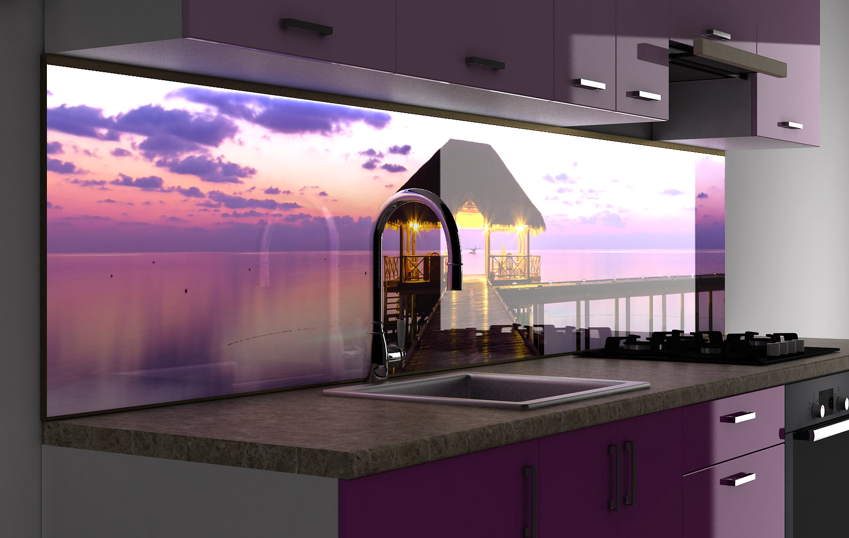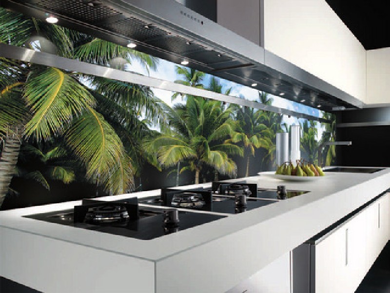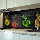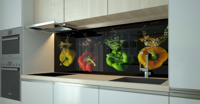 Le plus cher, mais plus fiable et durable que le plastique et la céramique.Pour leur fabrication en verre ordinaire ou en verre trempé. Ils sont plus que résistants aux changements de température soudains et à une humidité excessive. Ils ont une petite taille comparée au plastique par exemple, car le poids du verre est plus plastique. De plus, en raison de la taille, le montage d'un tel panneau mural peut être effectué même après l'installation de l'équipement dans la cuisine.