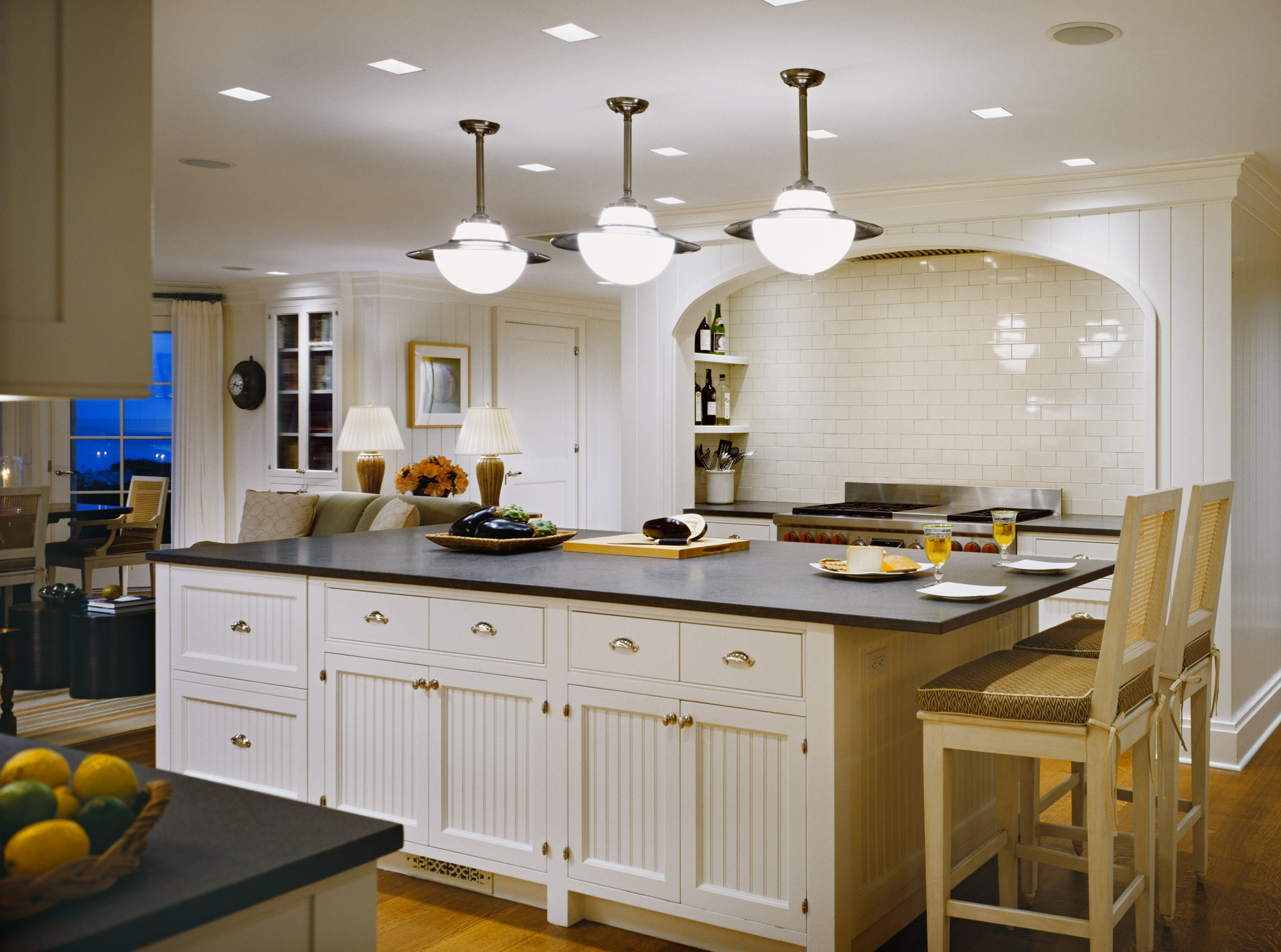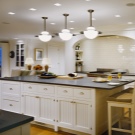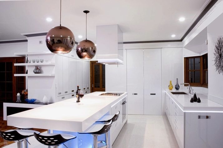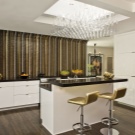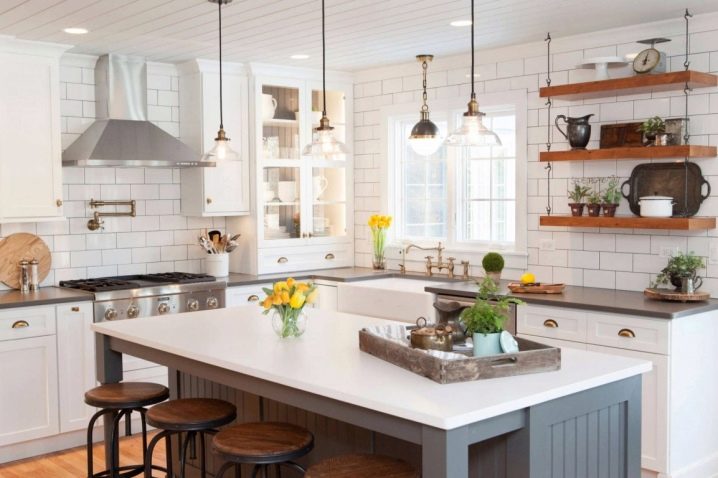 - Maximum de lumière dans la cuisine. Sans armoires suspendues, la lumière du lustre atteindra uniformément la zone de cuisson et un éclairage supplémentaire pourrait ne pas être utile.