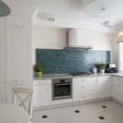 La finition du mur au-dessus de la zone de travail doit consister en des matériaux soigneusement sélectionnés et de haute qualité, comme la céramique, la pierre naturelle ou le verre résistant à la chaleur. Cet article est très important, car le papier peint ordinaire à cet endroit est impraticable.
