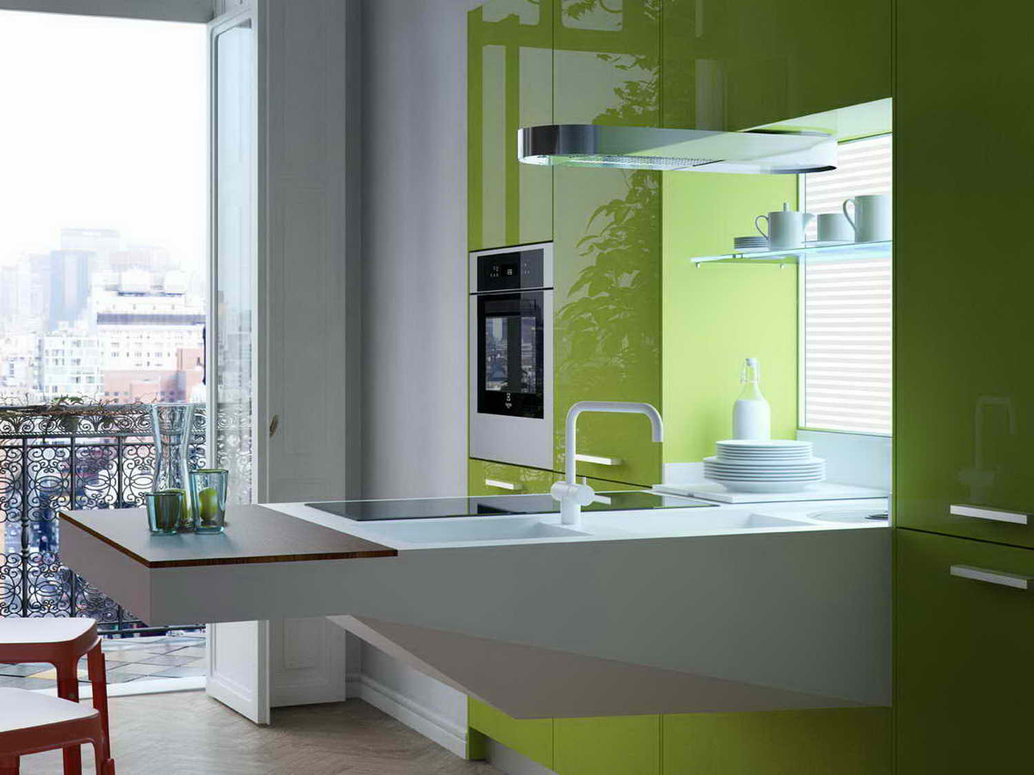 - Espace supplémentaire et espace visuel de la pièce. A l'air bien si la cuisine est assez petite.