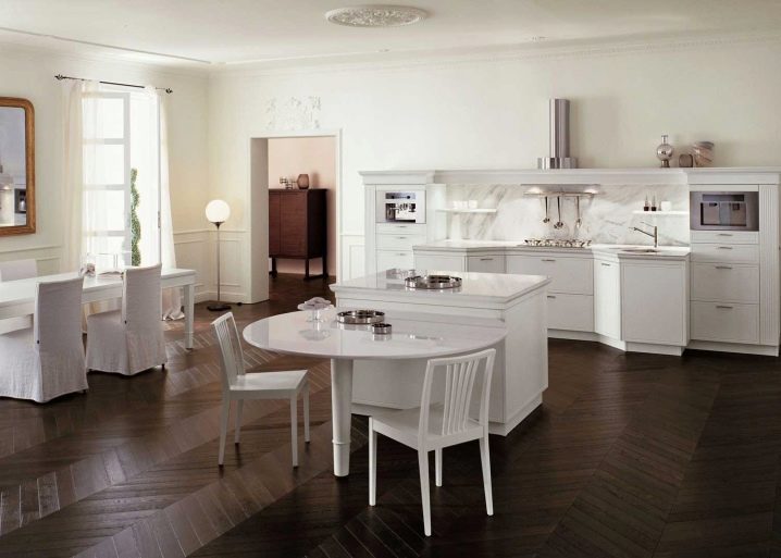 De nombreuses personnes pensent qu'un casque sans armoires basses ne convient pas à l'intérieur d'un appartement moderne et n'a pas l'air à sa place. Nous dissipons ces mythes et vous présentons une sélection de photos d’une cuisine à un niveau, décorées dans les styles les plus courants.