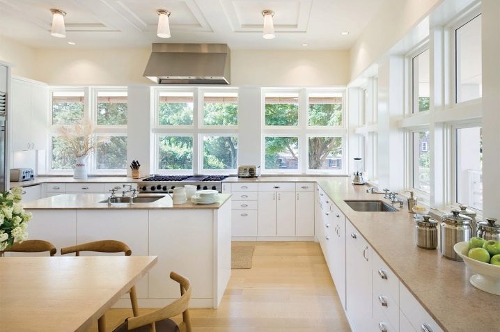 - En forme de U. Une option qui peut être mise en œuvre dans une cuisine spacieuse et dans le "Khrouchtchev"