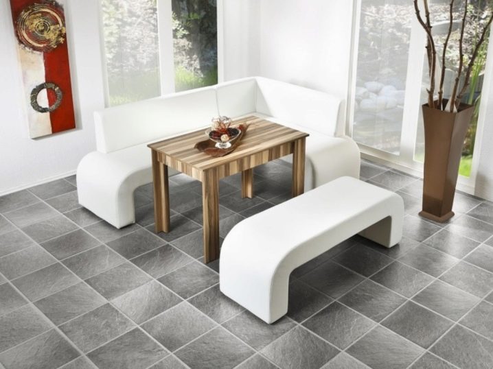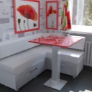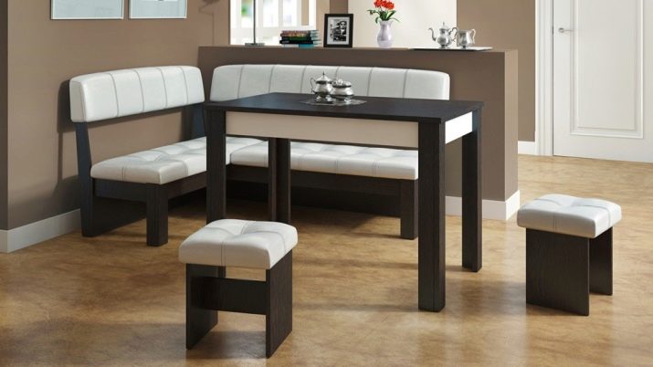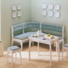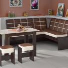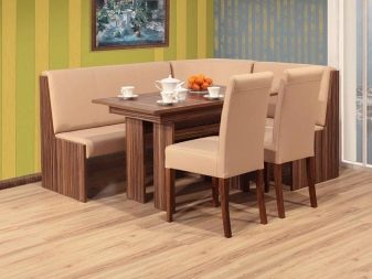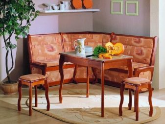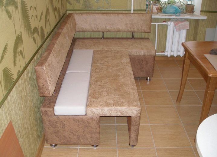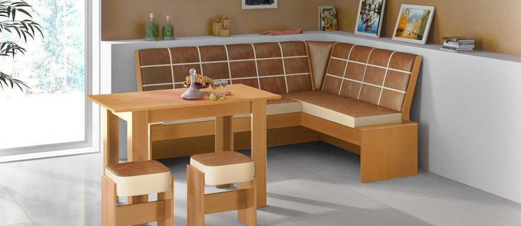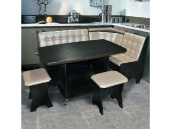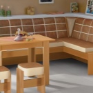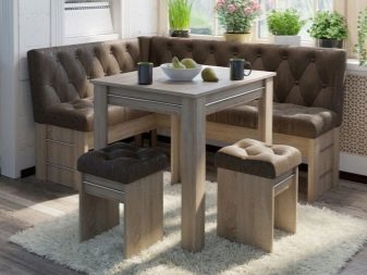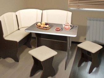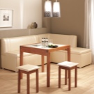 S'il n'y a pas du tout d'espace supplémentaire dans la cuisine, vous pouvez utiliser des bancs moelleux compacts. Le dos sera un mur ou un support fabriqué par vos soins. En choisissant des bancs moelleux, vous devez tenir compte de la largeur et de la longueur des sièges, de sorte que ce meuble "s'intègre" même dans la plus petite kitchenette.