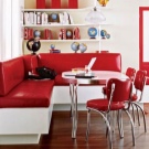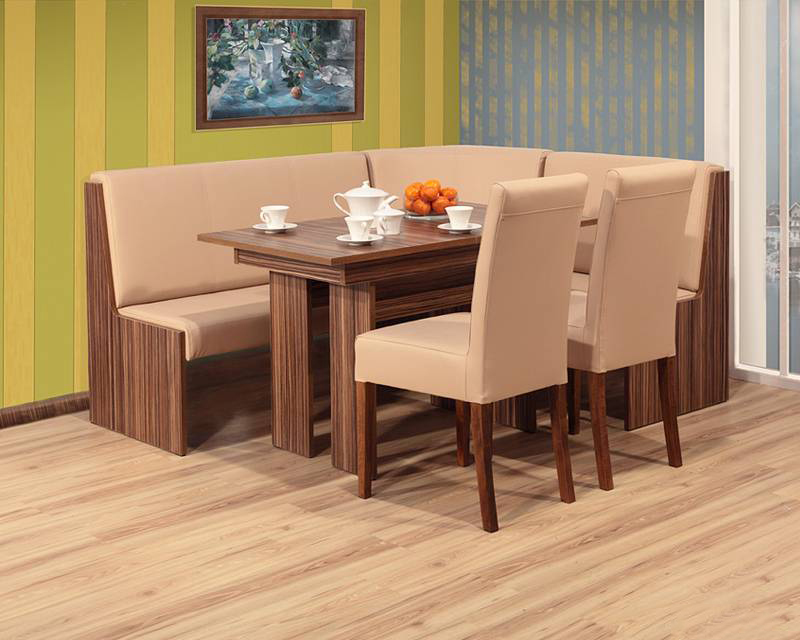 Cuisine - un endroit où les meubles sont exposés à la pollution la plus fréquente. Les surfaces étant constamment encrassées, la zone souple de la cuisine doit être aussi éloignée que possible des surfaces de travail.Il est préférable de choisir des matériaux de couleur sombre ou d'acheter des revêtements en cuir. Il faut toujours se rappeler que les surfaces des meubles de la cuisine devront être nettoyées plus souvent que l’intérieur des autres pièces. Même si tous les membres de la famille s’occupent d’eux-mêmes à chaque seconde et que la hotte reste allumée en permanence, les gouttes se déposeront sur les meubles et il est très difficile de les nettoyer.
