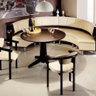 La plupart économise de l'espace. Les tabourets sont compacts et faciles à cacher sous la table. Manque d'un - sur les tabourets ne sera pas en mesure de se détendre et se reposer, propice à un repas rapide, une collation.