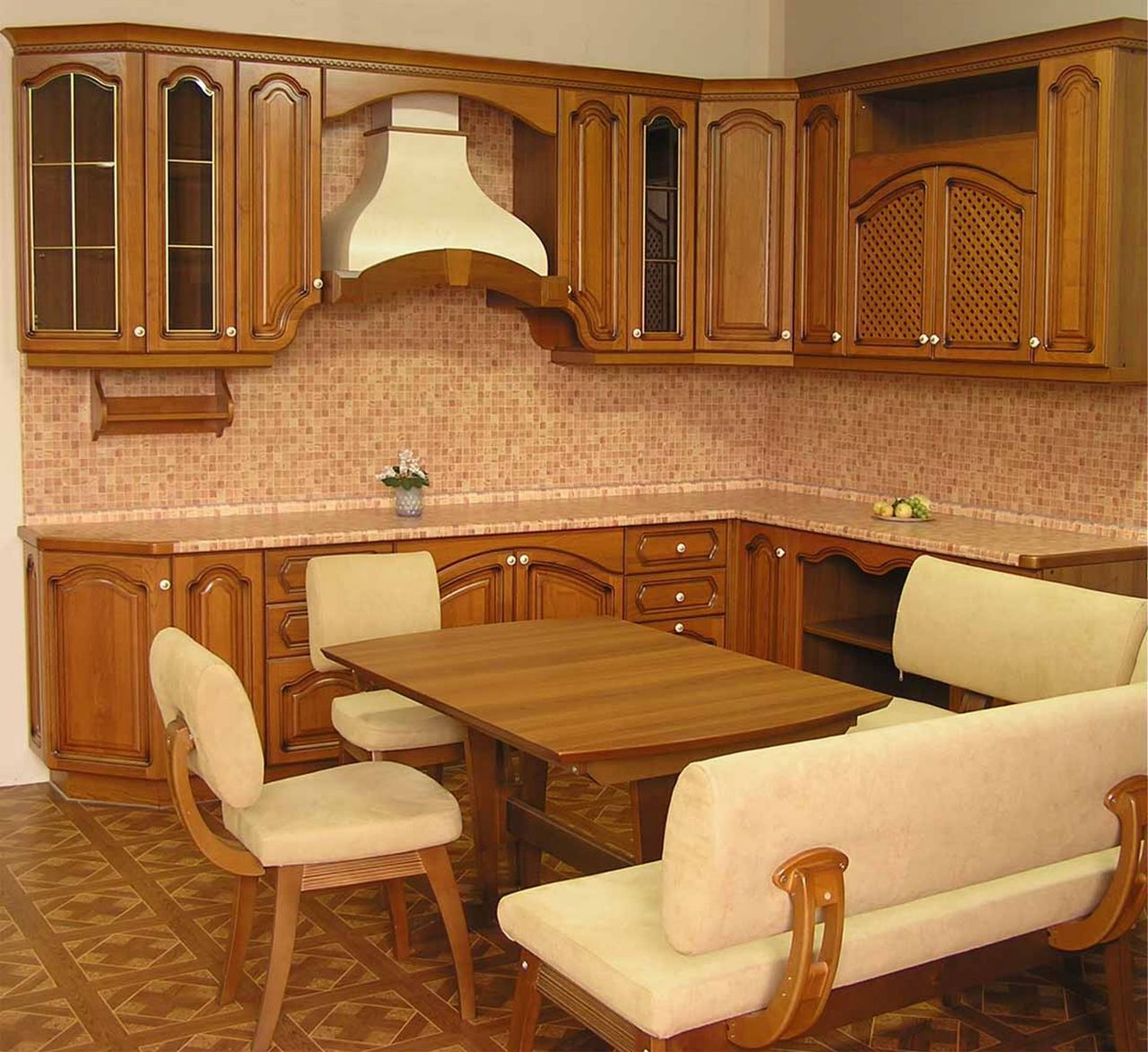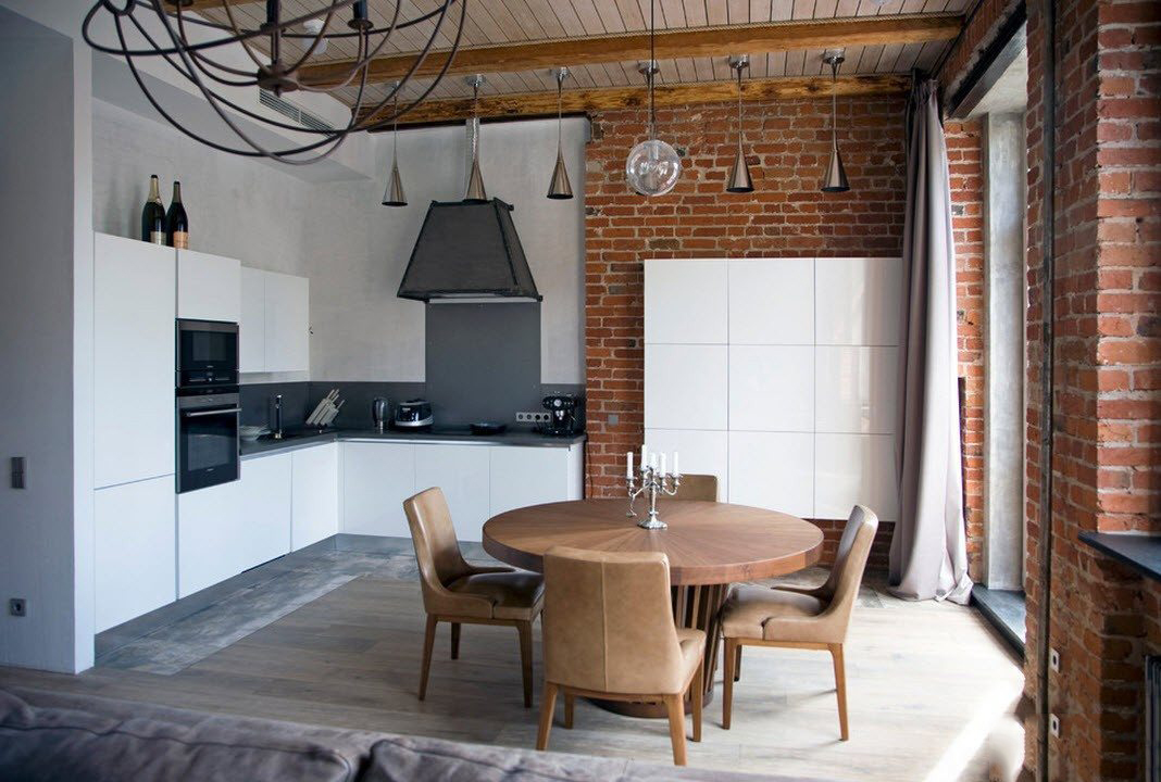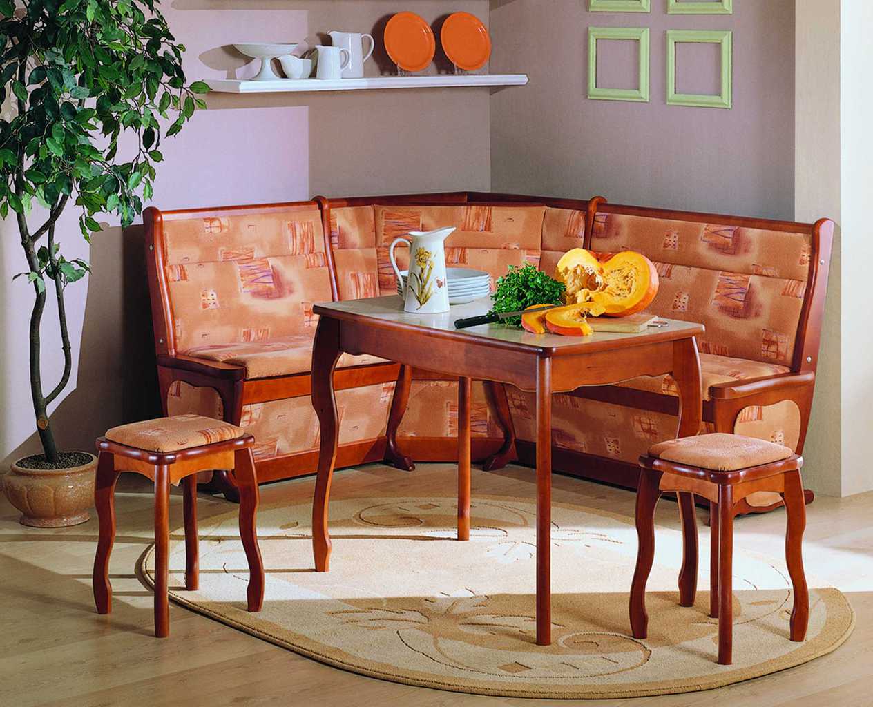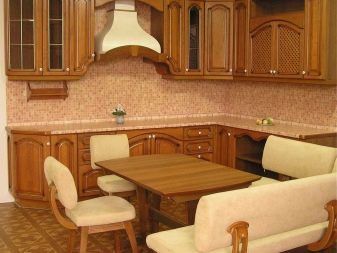 Si la cuisine a une taille impressionnante, le meuble rembourré ne gâchera pas son intérieur, mais le complétera. Un grand canapé et une table en bois massif deviendront un endroit où toute la famille se réunira tous les jours pour discuter du jour qui passe au dîner.
