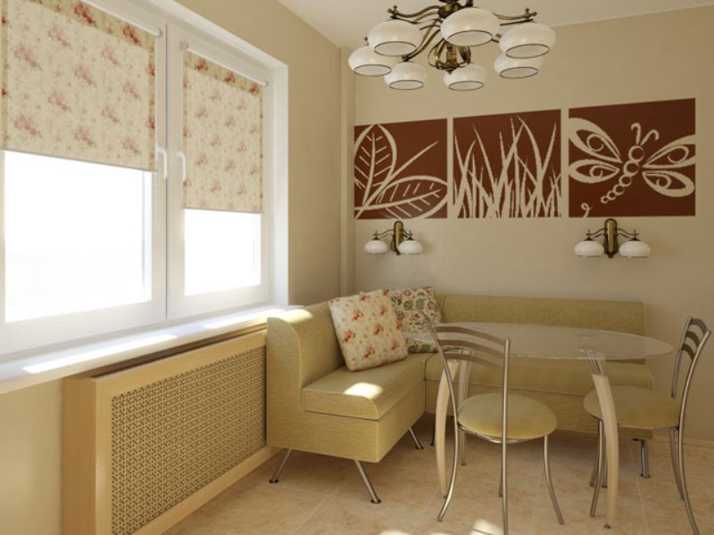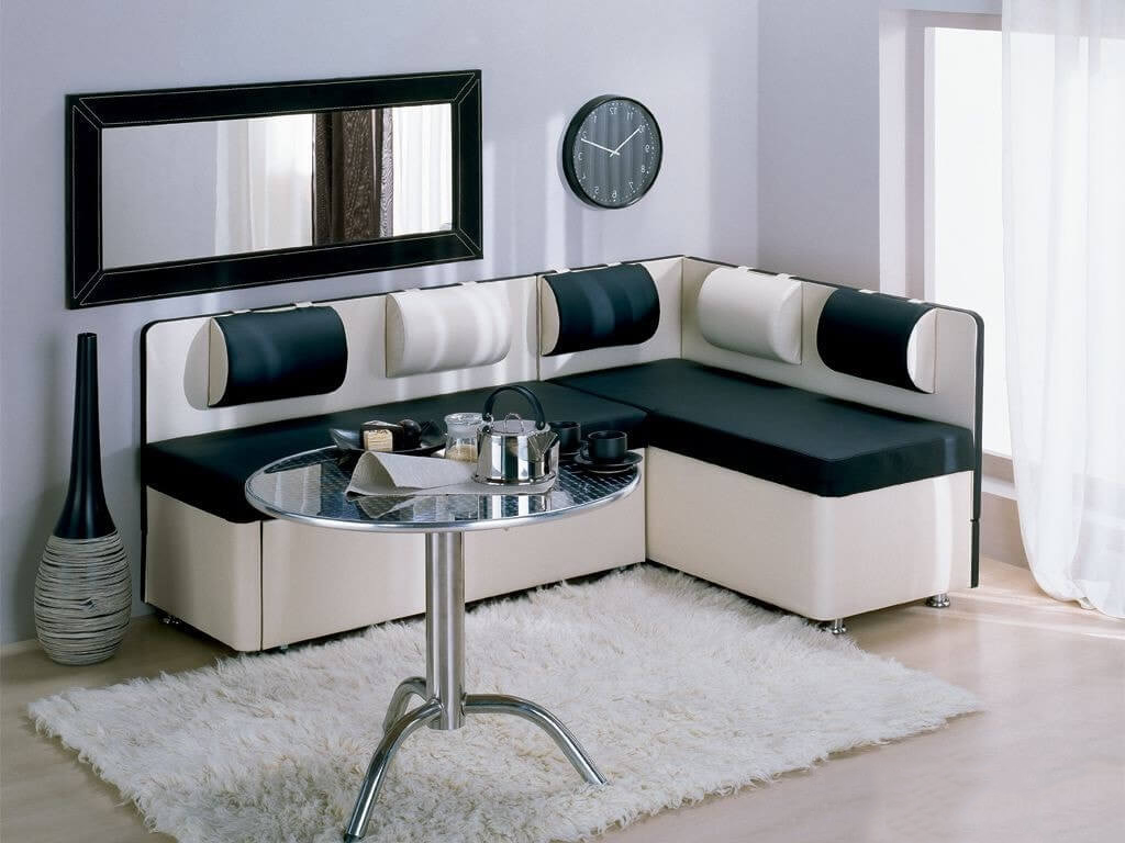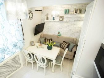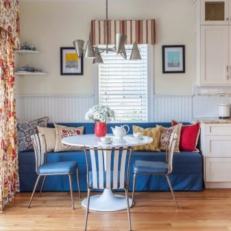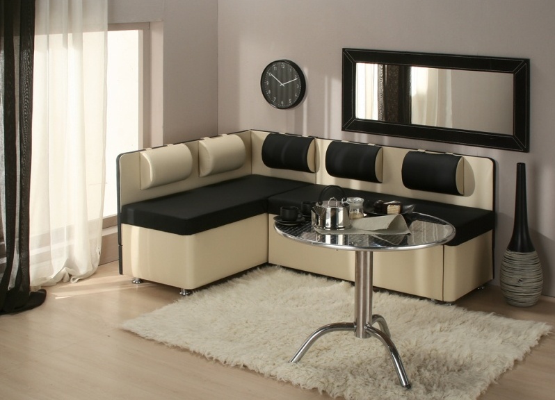 Le stéréotype, indiquant que la place des meubles rembourrés uniquement dans le hall ou dans les autres salons s'estompe progressivement. Un bon endroit pour un séjour confortable peut être une cuisine, même si elle est petite. En outre, les réalités modernes de la vie supposent la présence d'une télévision dans cette pièce. Un canapé ou un canapé à part entière dans la cuisine sera donc très utile.