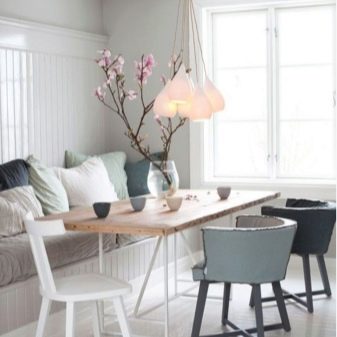 Dans les cuisines des appartements, les canapés moelleux sont rarement installés, la plupart des ménages ne pouvant se permettre un tel luxe en raison de la petite superficie. Mais cela ne s'applique pas aux studios de cuisine combinés. Les propriétaires de ce type de propriété peuvent utiliser des canapés moelleux, un lieu idéal pour se détendre.