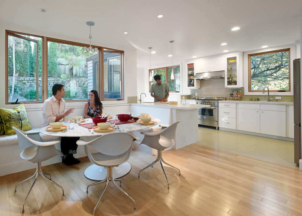 Dans de rares cas, vous pouvez voir une grande cuisine. En règle générale, il s’agit d’une pièce modeste, où, entre temps, les ménages passent beaucoup de temps personnel. Il n’est donc pas surprenant que chaque femme au foyer souhaite aménager sa cuisine de manière à ce qu’il soit non seulement commode et agréable de préparer des friandises, mais aussi de se reposer confortablement pendant leur dégustation dans ses murs.