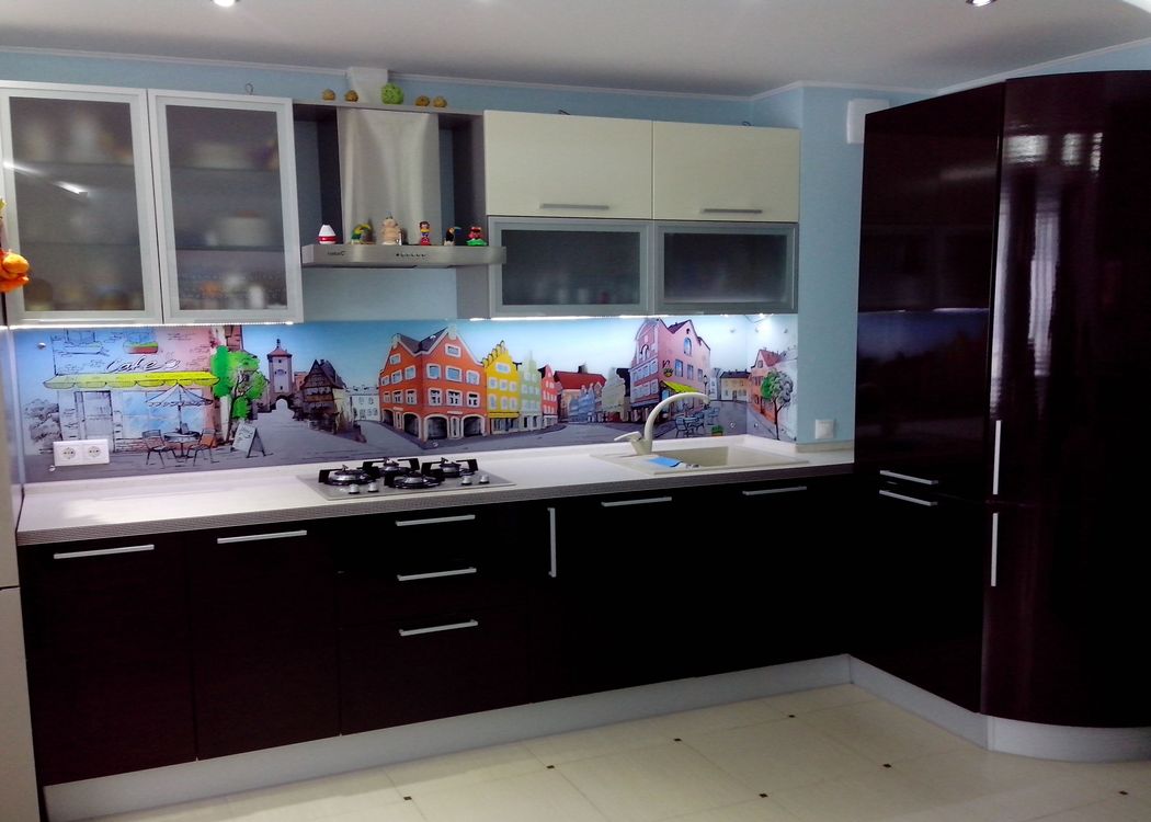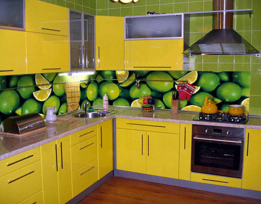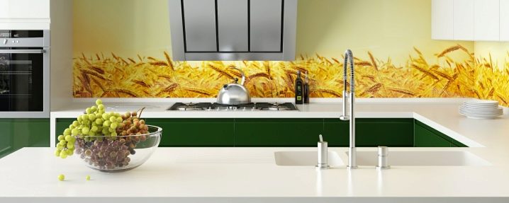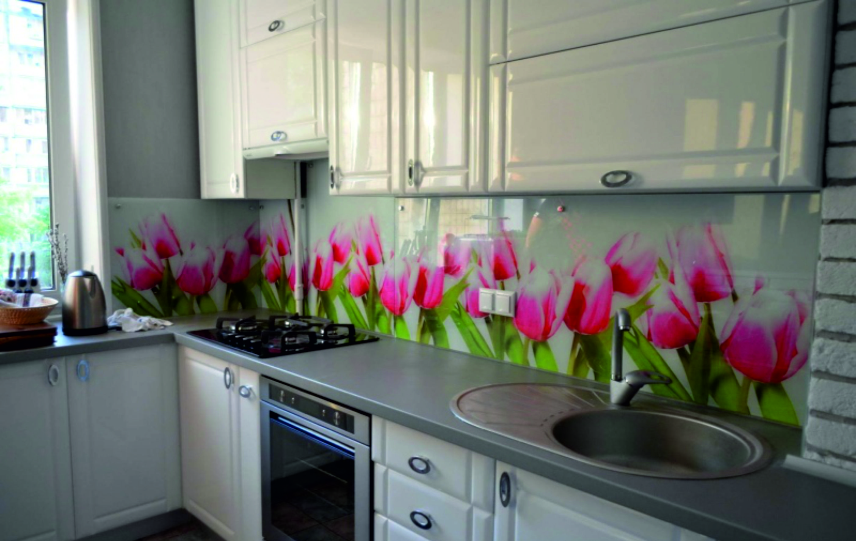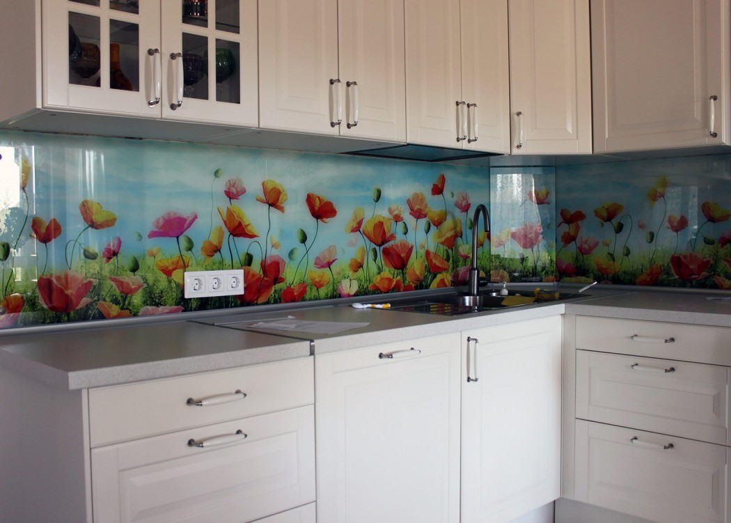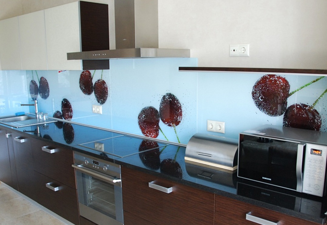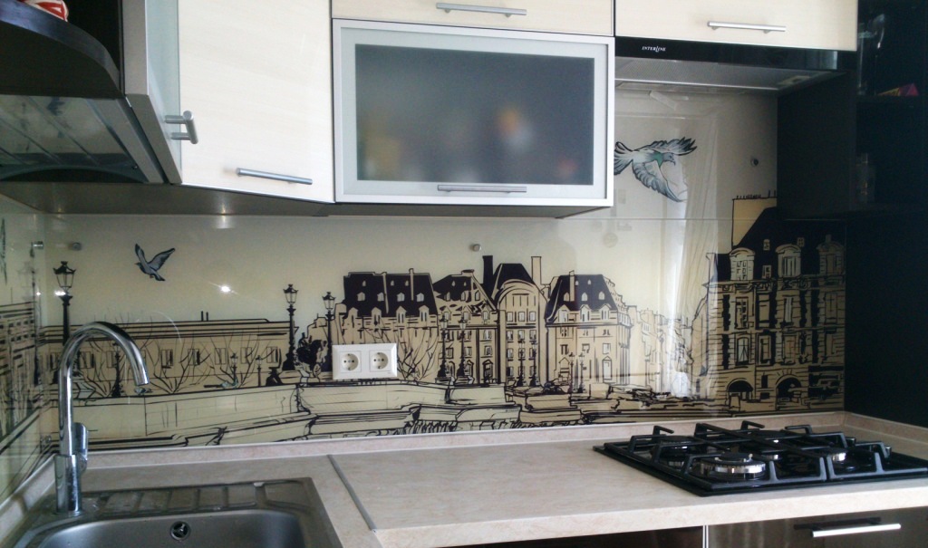 Les panneaux de verre - skinali - sont idéaux pour photofartuk dans la cuisine.Ils sont constitués de divers verres: ondulé, teinté, dépoli, transparent ou coloré. L'épaisseur de la feuille dépend de la surface du revêtement (plus la surface est grande, plus le verre est épais).