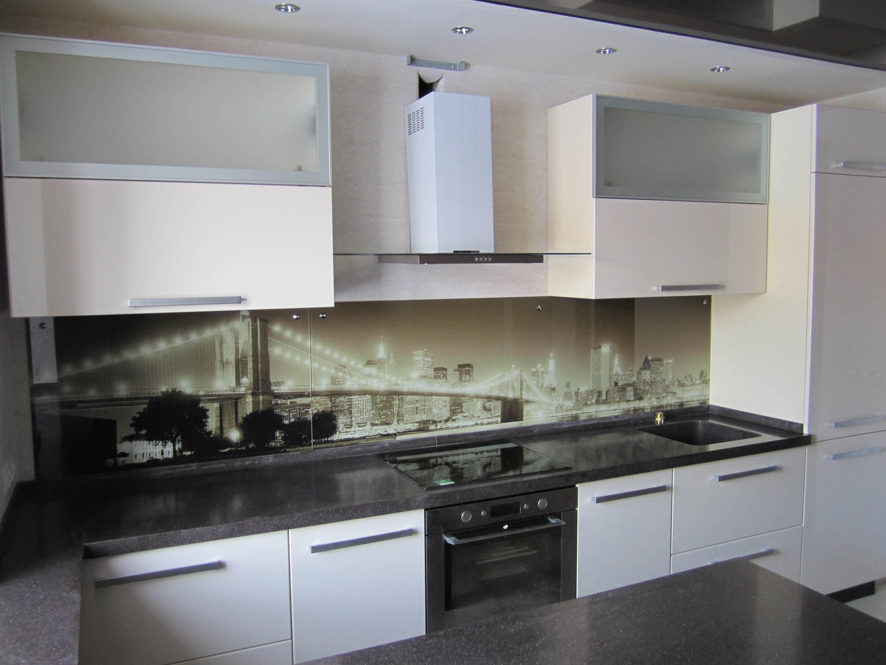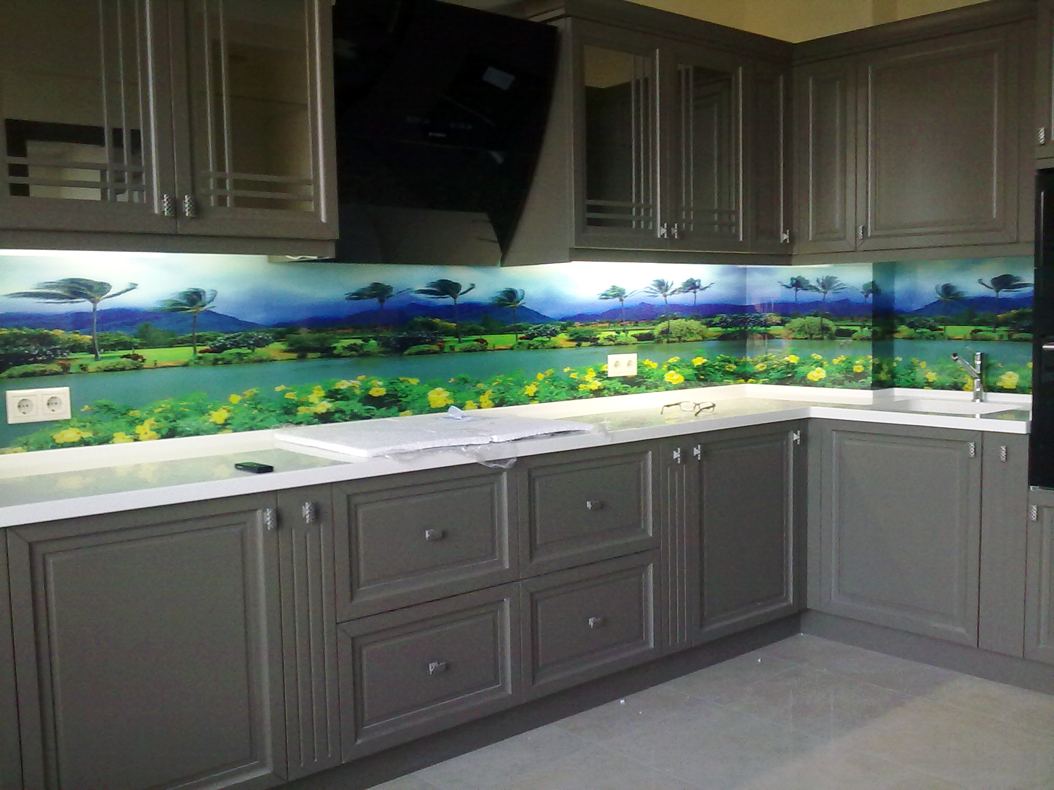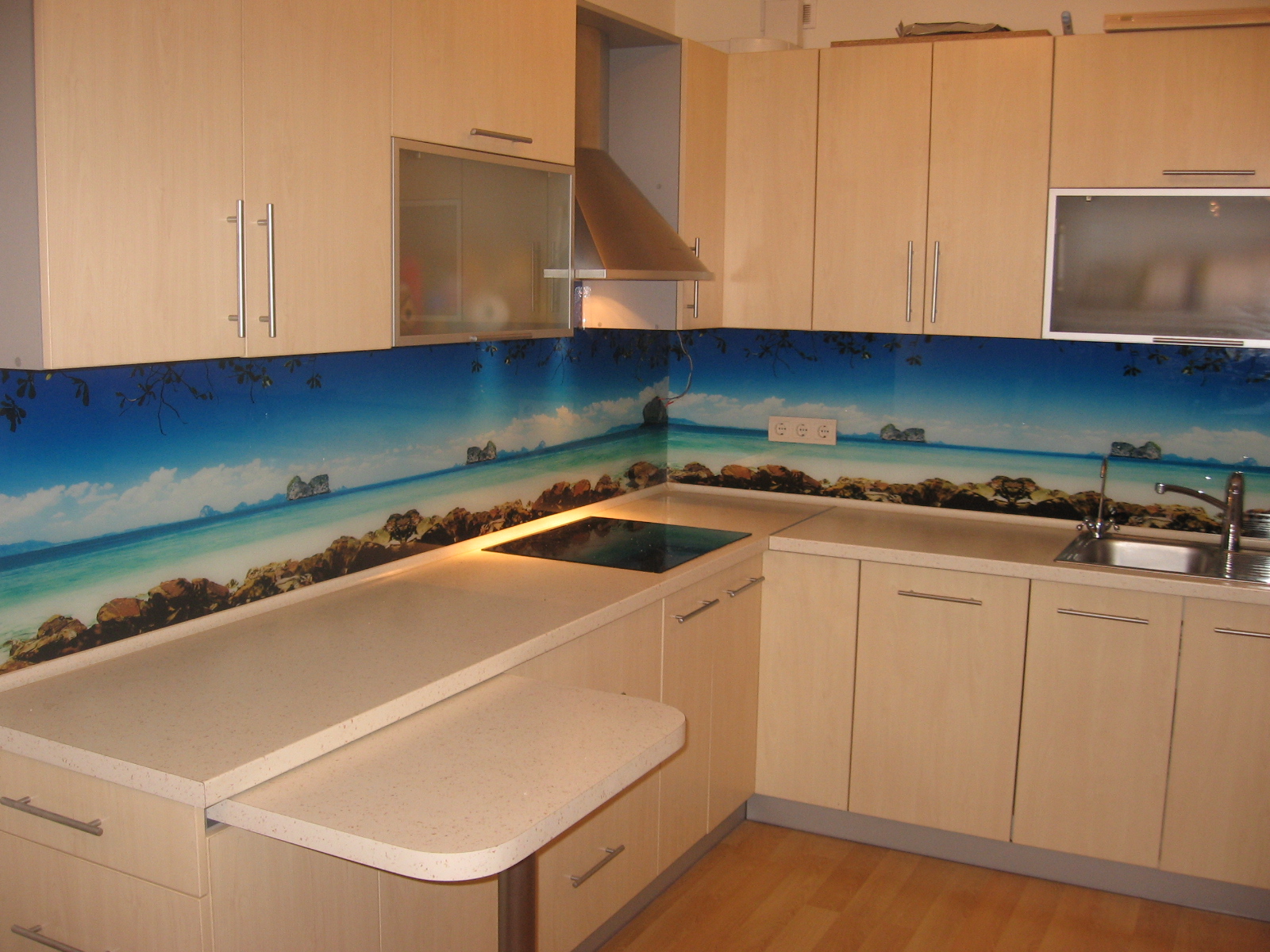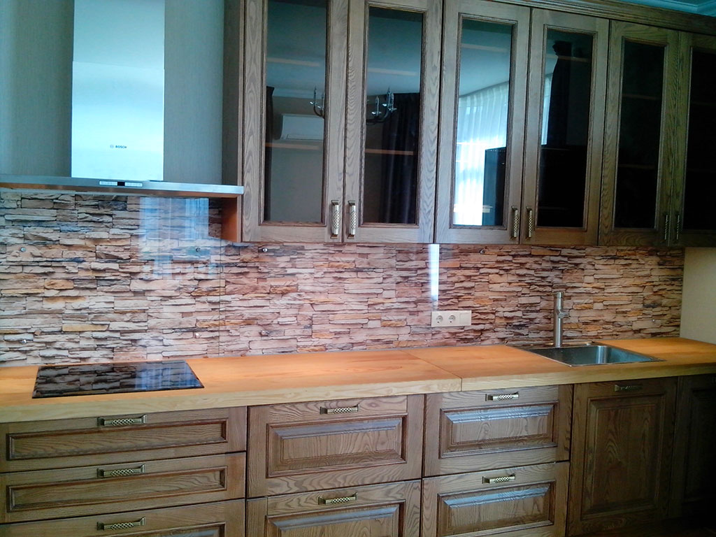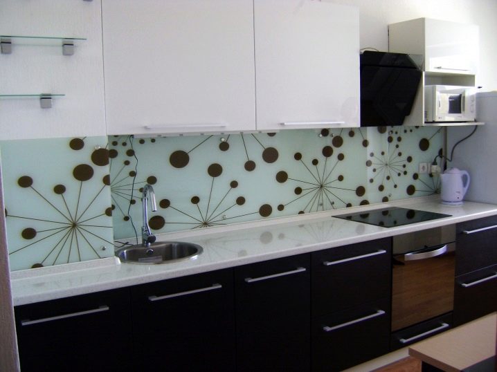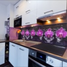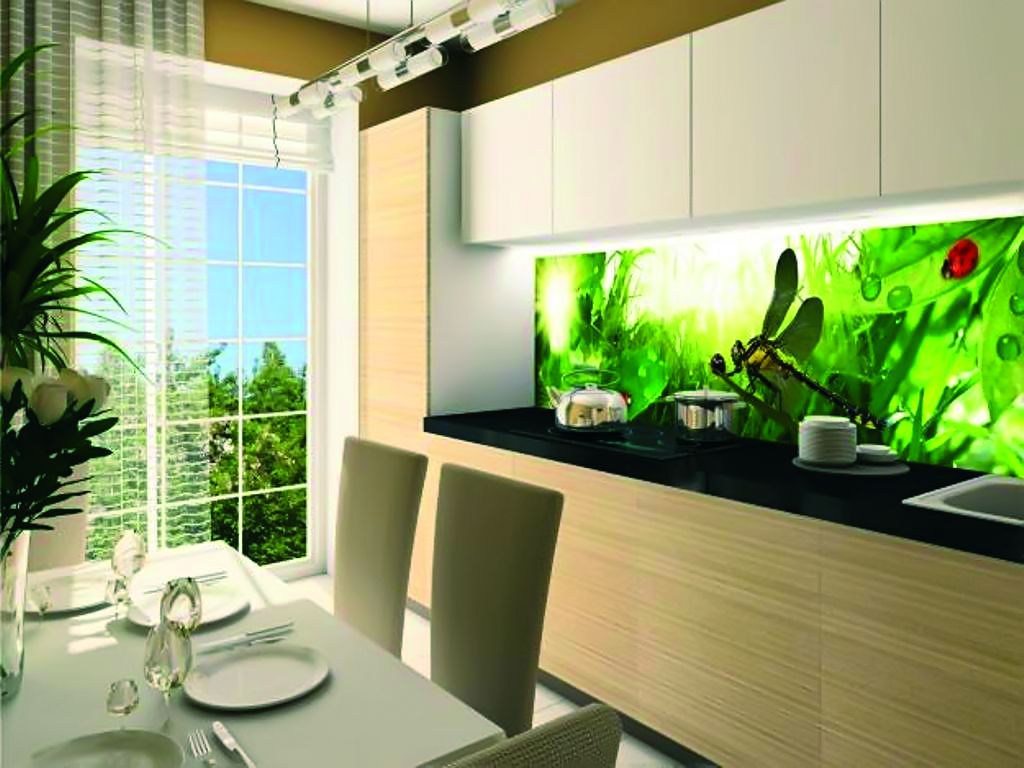 Les panneaux de verre - skinali - sont idéaux pour photofartuk dans la cuisine.Ils sont constitués de divers verres: ondulé, teinté, dépoli, transparent ou coloré. L'épaisseur de la feuille dépend de la surface du revêtement (plus la surface est grande, plus le verre est épais).