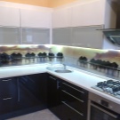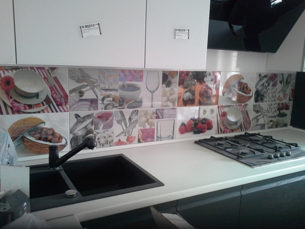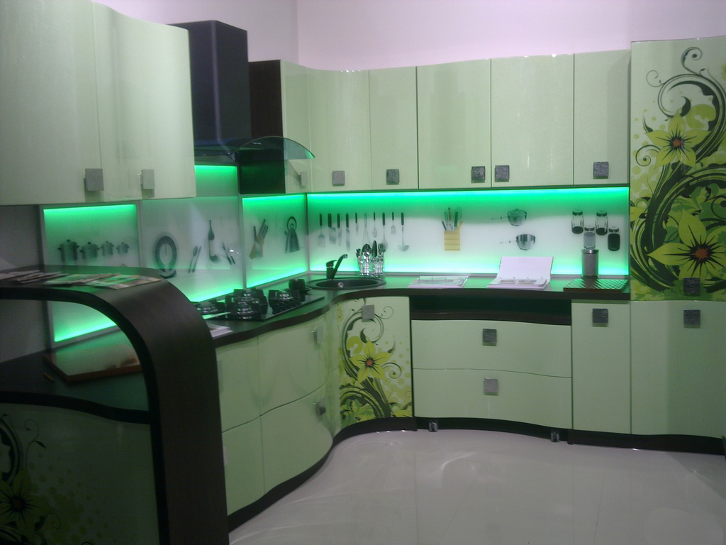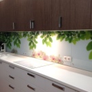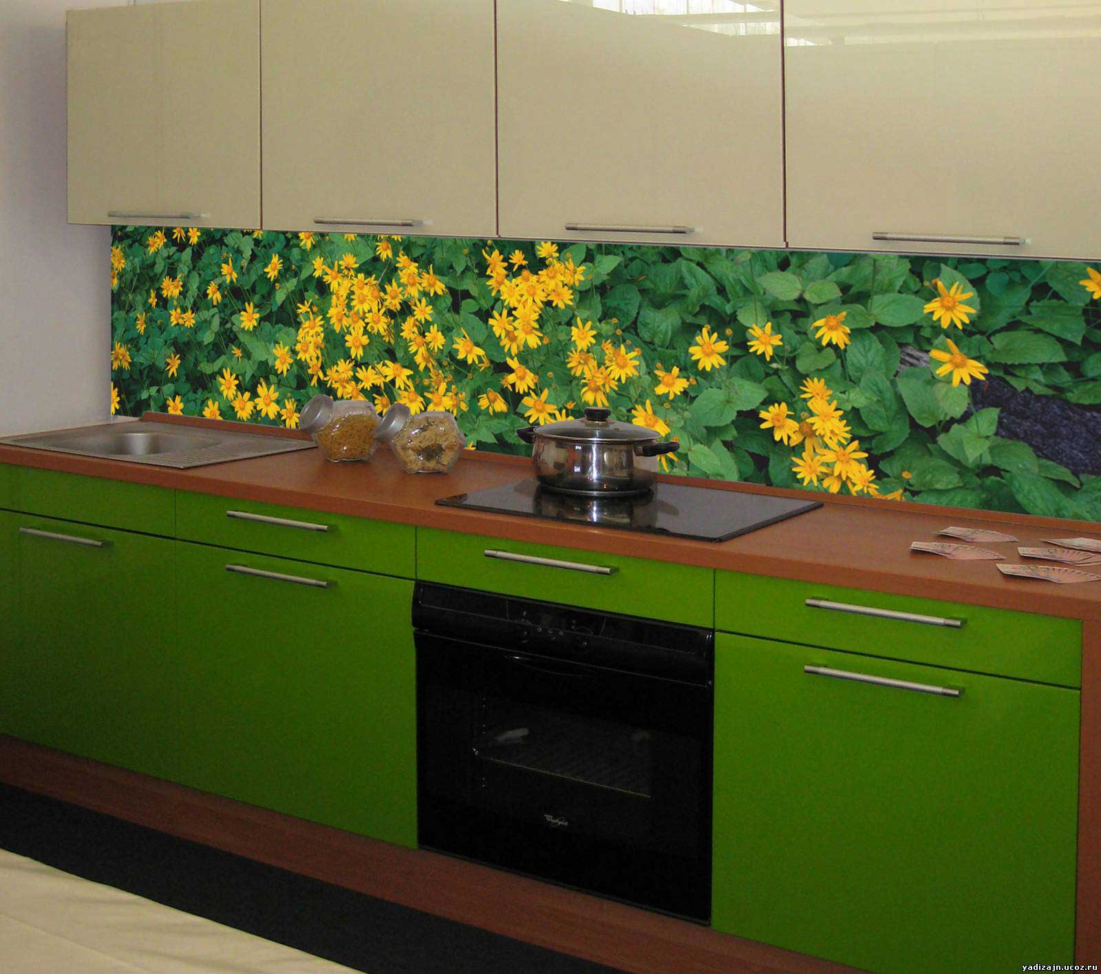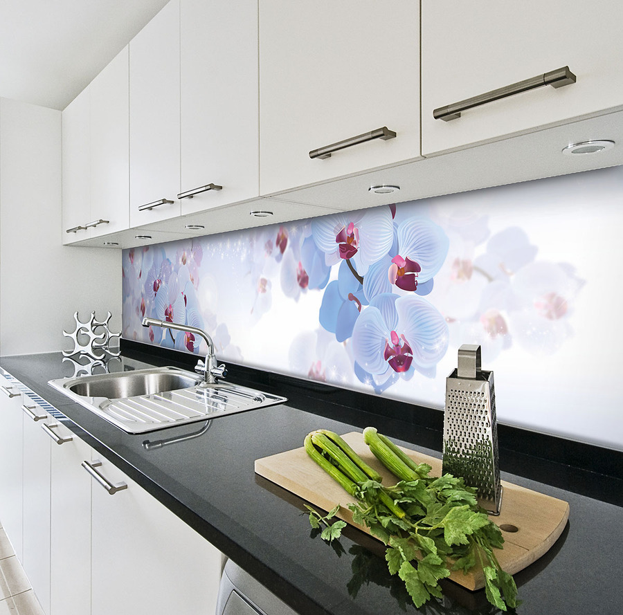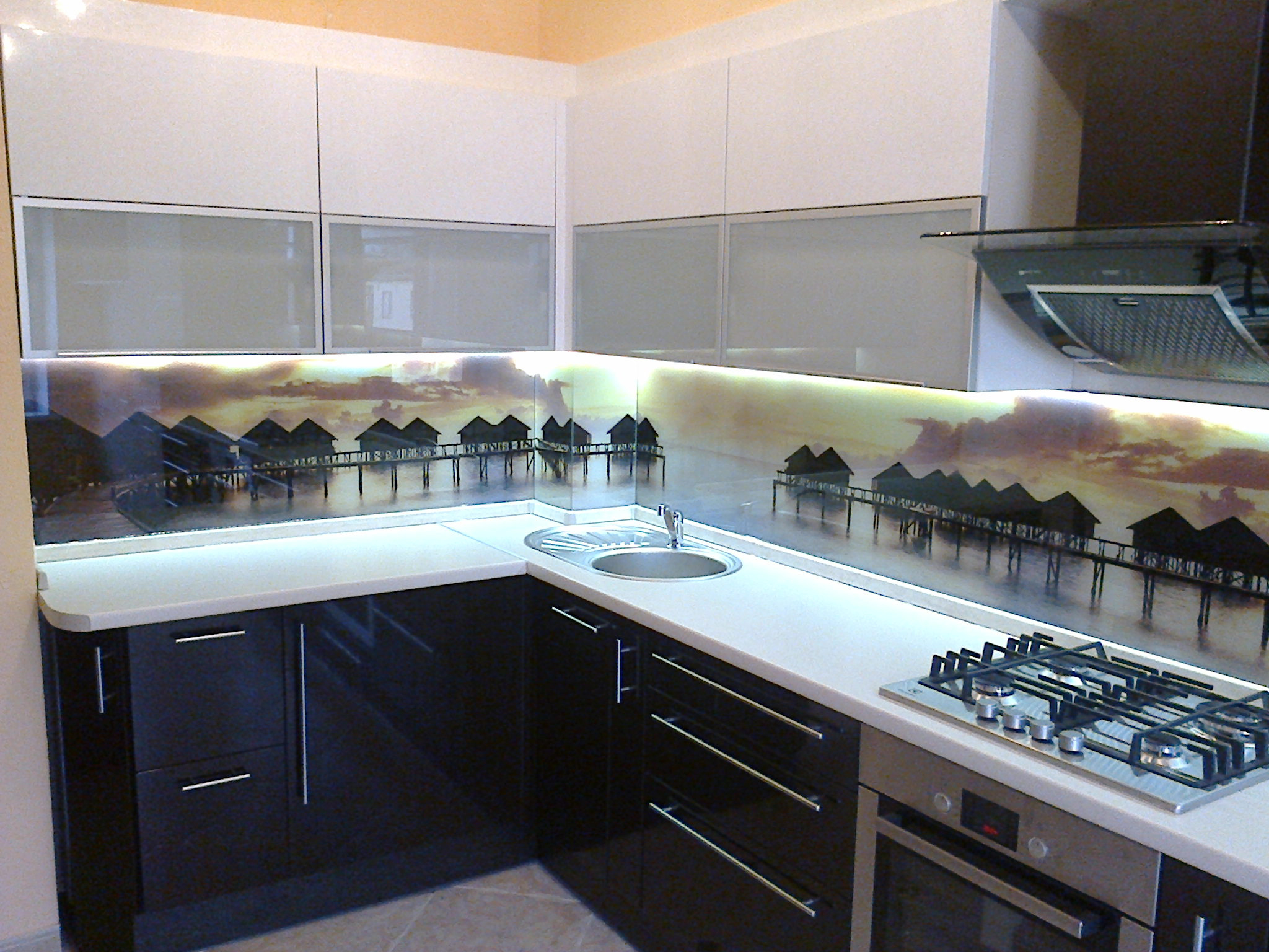 Les panneaux de verre - skinali - sont idéaux pour photofartuk dans la cuisine.Ils sont constitués de divers verres: ondulé, teinté, dépoli, transparent ou coloré. L'épaisseur de la feuille dépend de la surface du revêtement (plus la surface est grande, plus le verre est épais).