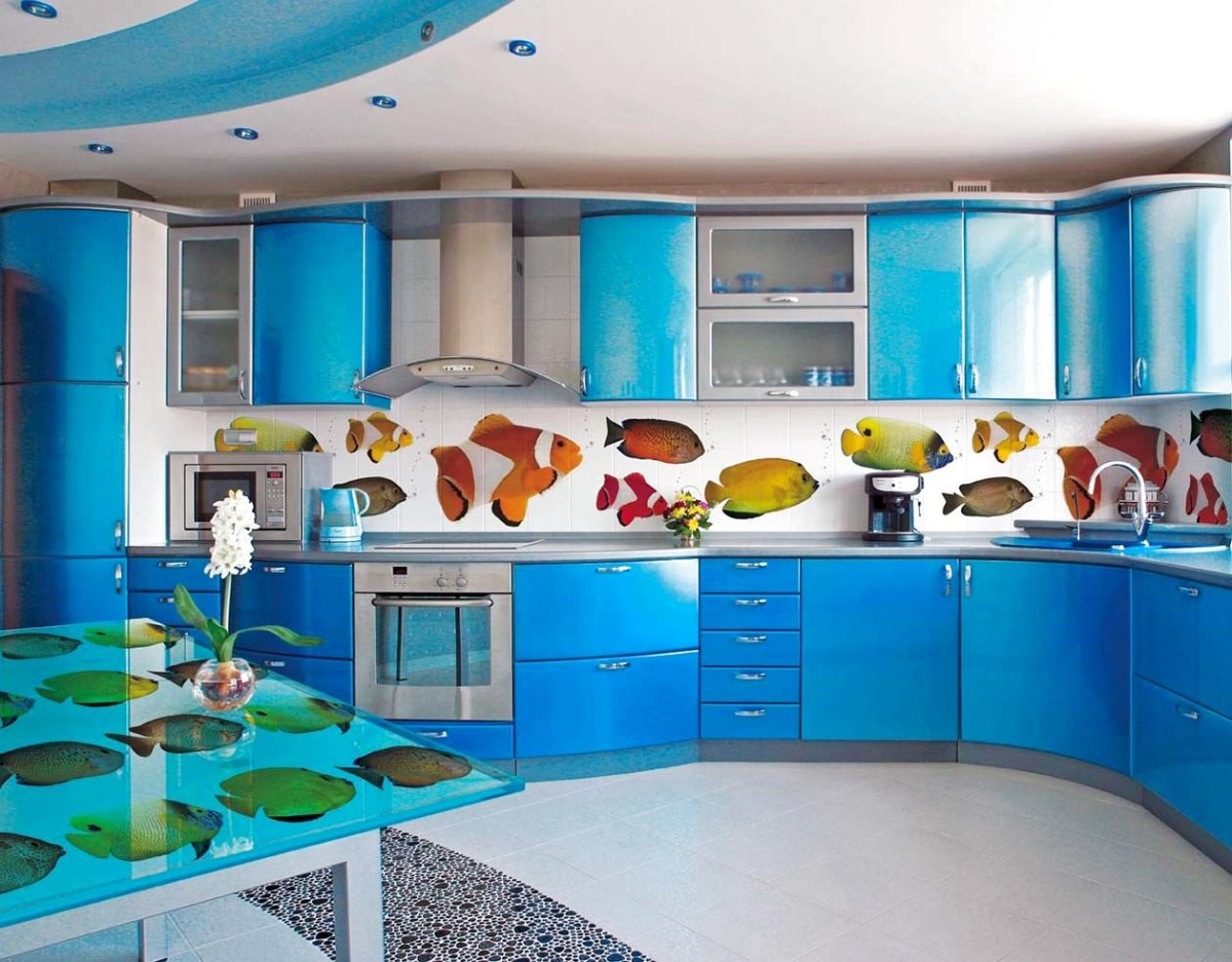 Après avoir choisi le type et le modèle du tablier pour la cuisine, la question se pose de l'image qui sera appliquée au panneau. Cette décision ne peut être prise rapidement. Il faut bien comprendre que le dessin est fixé de manière permanente au mur et doit non seulement s'intégrer de manière élégante et concise à l'intérieur, mais également être harmonieux.