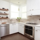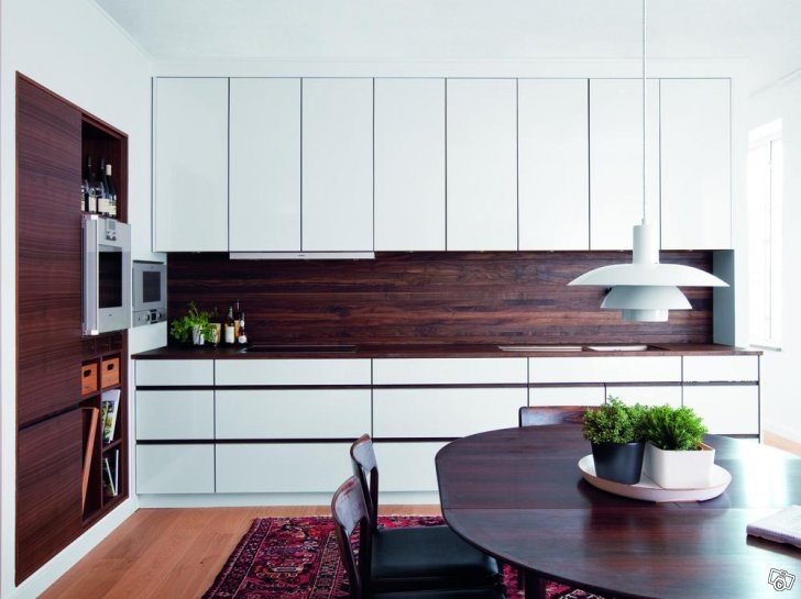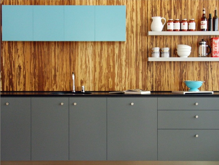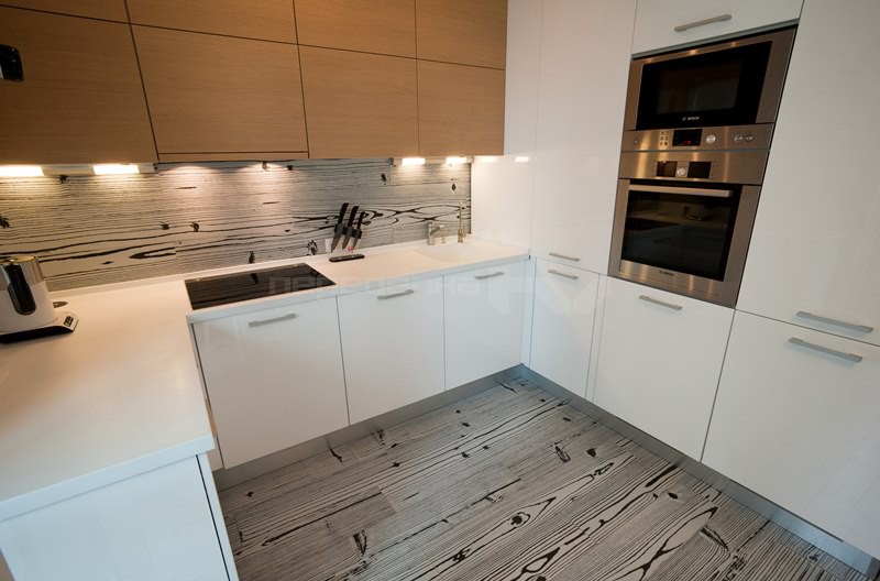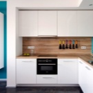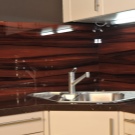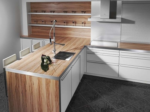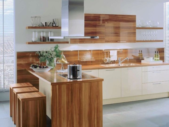 Il convient de noter que, récemment, dans la création de cuisines modernes, le stratifié a plutôt souvent été utilisé à la place d'un tablier. Cela est dû non seulement à l'aspect attrayant du matériau, mais également à ses excellentes performances. La surface du stratifié est facile à nettoyer, ne craignant pas les températures extrêmes et l'humidité.