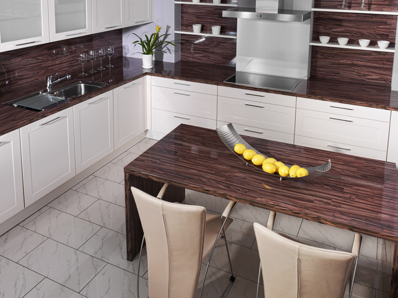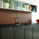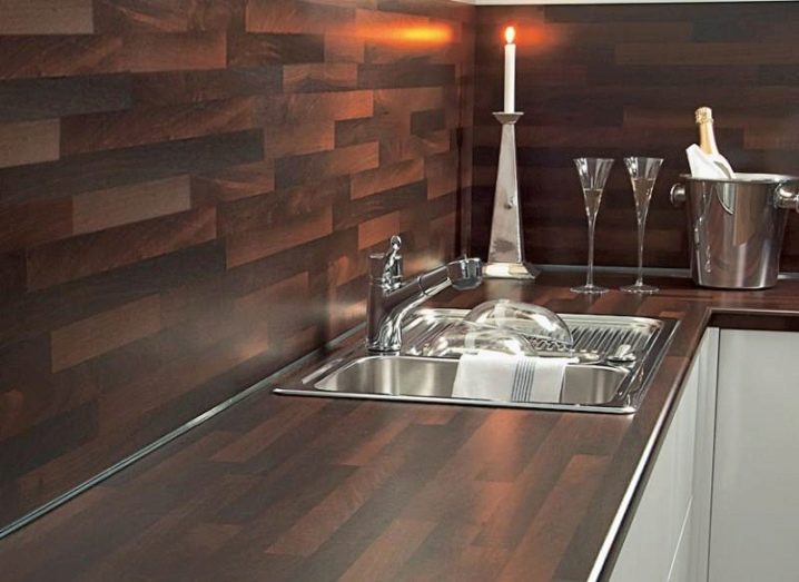 Le tablier en stratifié pour puits de cuisine protège un mur contre diverses pollutions, possède un haut niveau de résistance à l'eau et ne diffère pas dans les processus difficiles d'installation. Pour nettoyer la surface, vous pouvez utiliser divers produits chimiques. Même après un lavage régulier, le tablier ne perd pas ses propriétés et son apparence.