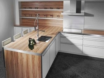 Il est à noter que si vous souhaitez équiper un tablier stratifié dans la cuisine, il est préférable d'utiliser des panneaux de classe 31 et 32. Ces espèces sont excellentes pour résister aux effets de l'humidité, elles ne craignent pas la charge intense, ce qui est important pendant le fonctionnement.