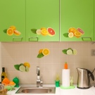 - Laisser revivre l'intérieur de la cuisine en quelques minutes. Une grande variété d'autocollants aidera à créer un design unique et unique. En raison de la variété de couleurs, de textures et de tailles, les autocollants peuvent décorer et compléter l’intérieur de différents styles.