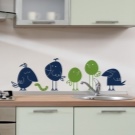 Les autocollants décoratifs s'intégreront parfaitement dans les différentes conceptions de la pièce, après l'avoir ajouté. Ils peuvent avoir une texture différente, ainsi qu'une surface brillante ou mate. Les autocollants sont appliqués sur un film autocollant en vinyle et traités avec une substance spéciale qui protège la surface de l’autocollant de l’environnement extérieur. Ils peuvent être collés non seulement sur le tablier de la cuisine, mais également dans la salle de bain.