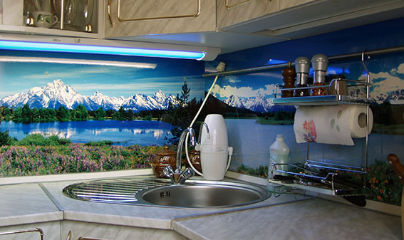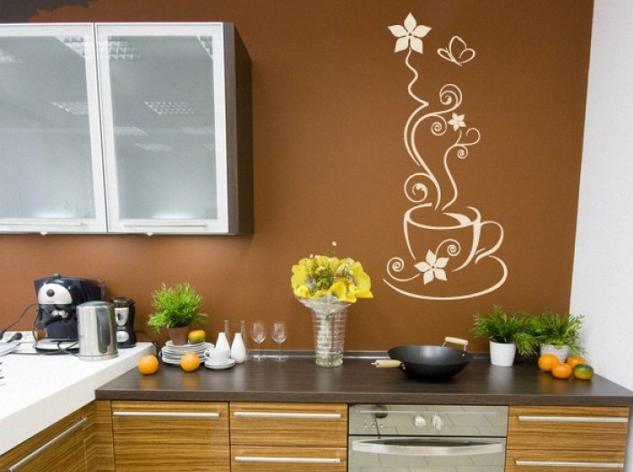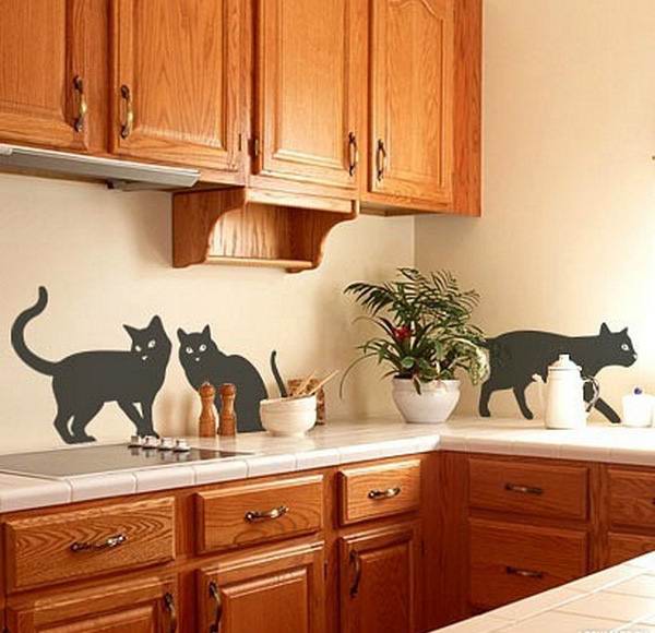 Ne limitez pas votre imagination et votre imagination lors de la planification de l'intérieur. Une variété d'autocollants sur le tablier de la cuisine vous aidera à créer une pièce confortable et originale qui ne laissera pas vos amis indifférents.