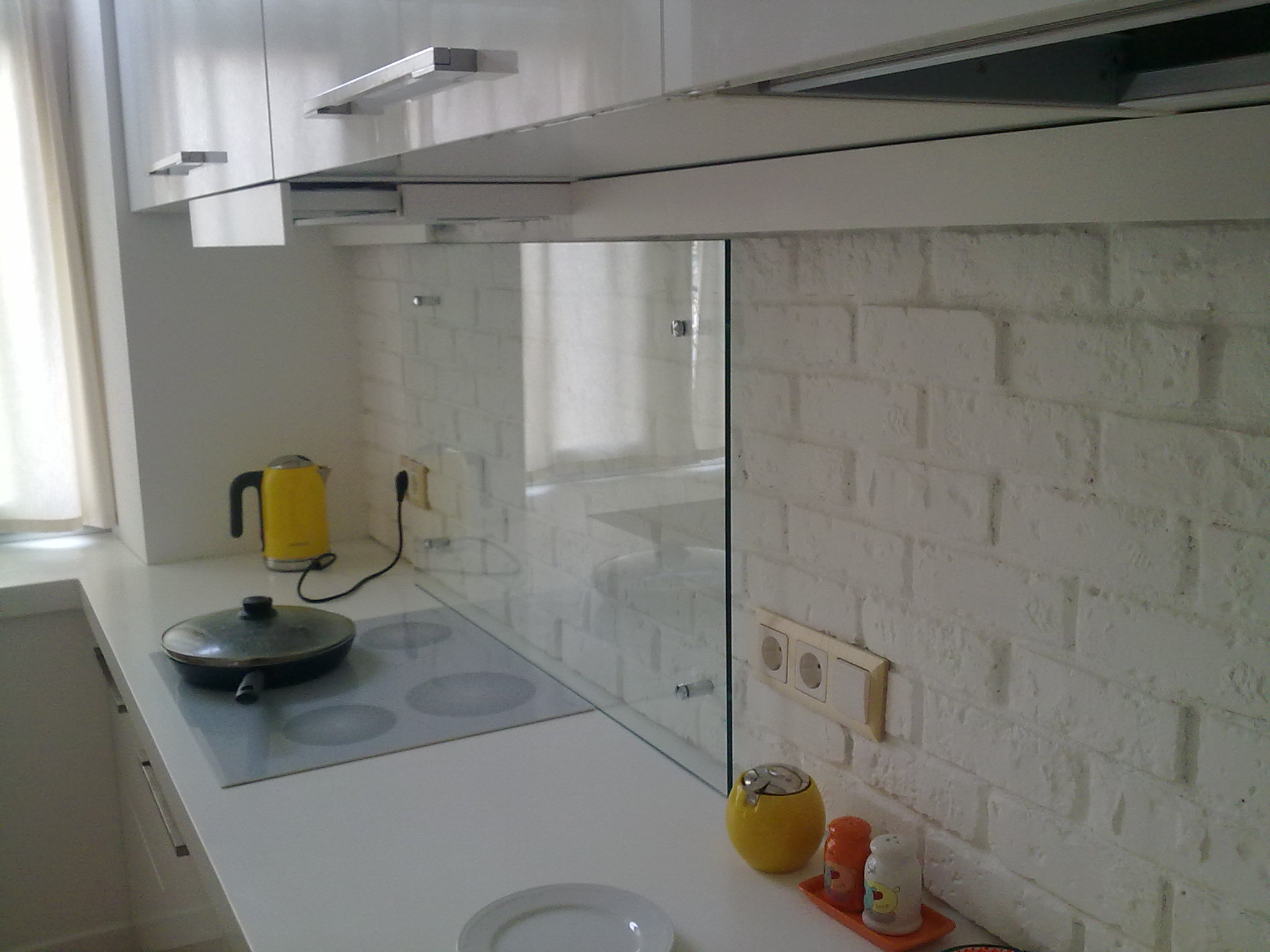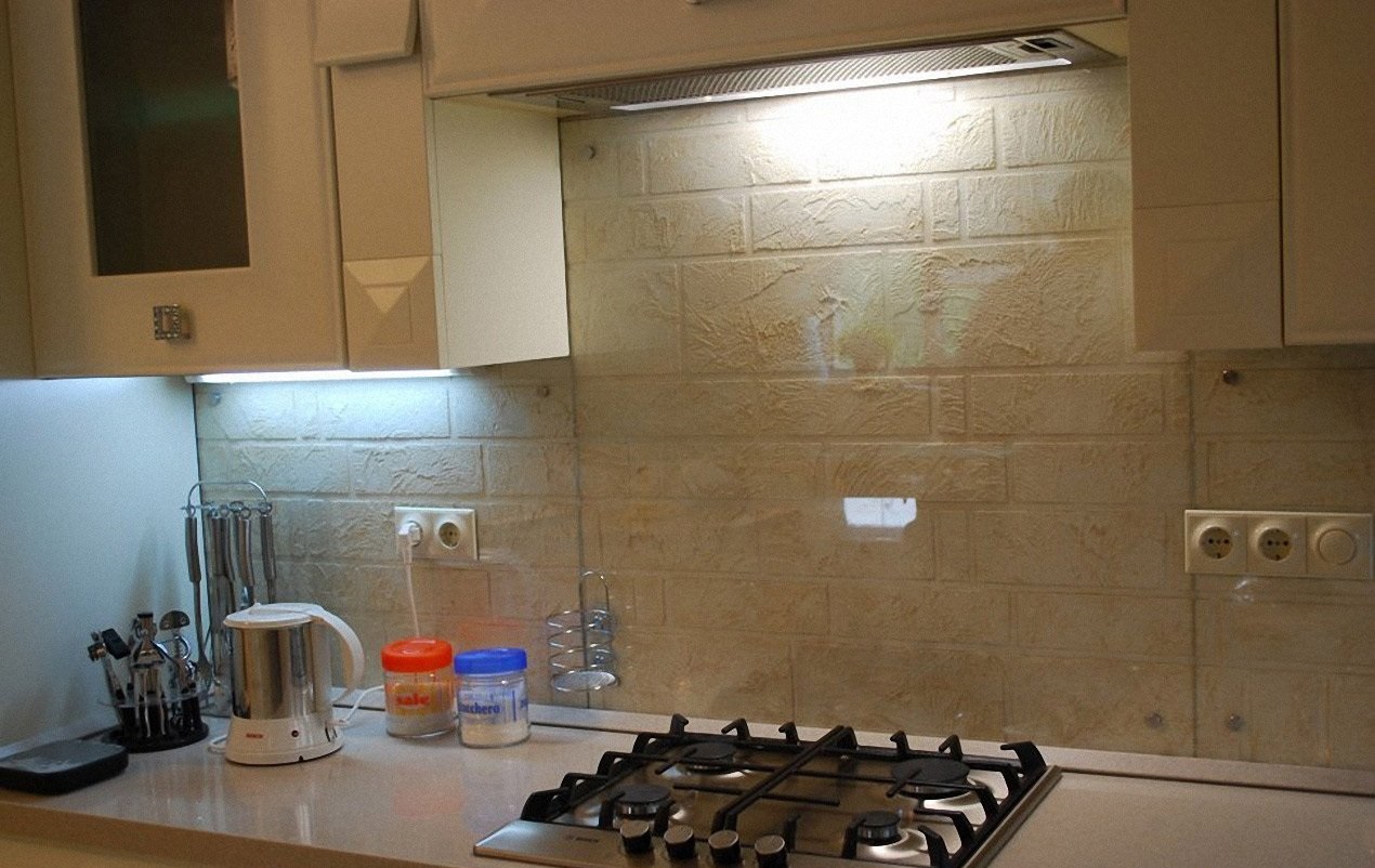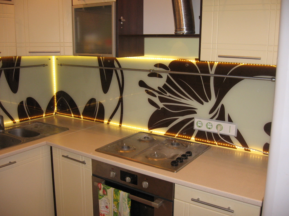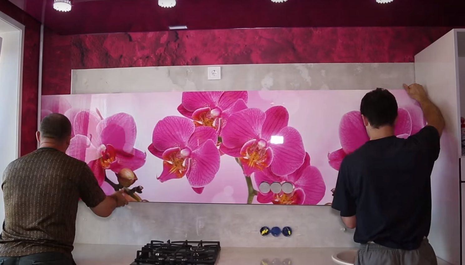 Des difficultés peuvent survenir lorsque vous avez un revêtement de verre. Ensuite, vous devez connaître à l'avance toutes les mesures et tous les calculs, faire tous les marquages et les donner au fabricant d'un tel tablier qui peut faire des trous à l'avance selon le plan d'aménagement de votre appareil électroménager.