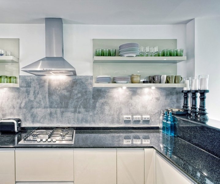 Le tablier de cuisine est une zone située au-dessus d'une surface de travail. Il est très fonctionnel: non seulement il recouvre le mur des éclaboussures, mais aussi parce que c’est sur celui-ci que se trouvent des prises pour appareils électriques servant à la préparation de différents plats: multicuiseurs, plaques électriques, mixeur, hachoirs à viande, etc.